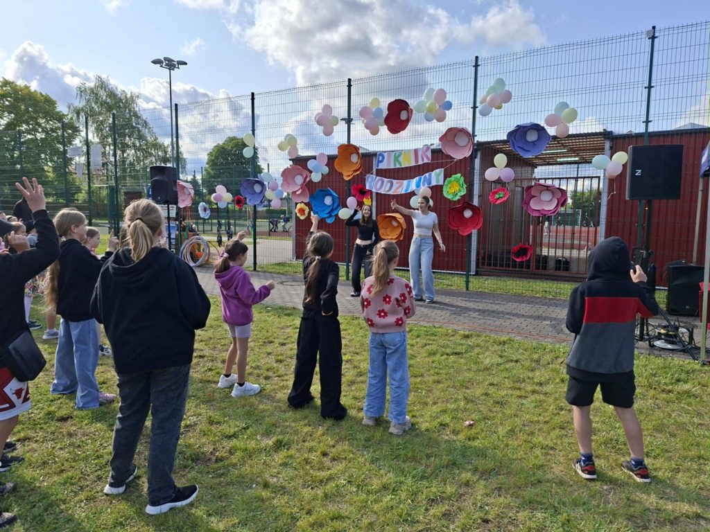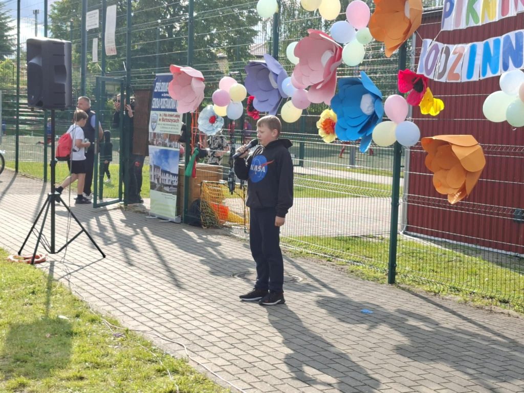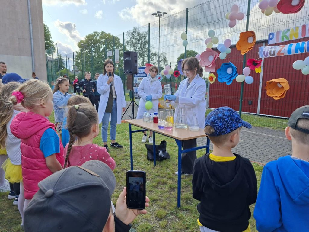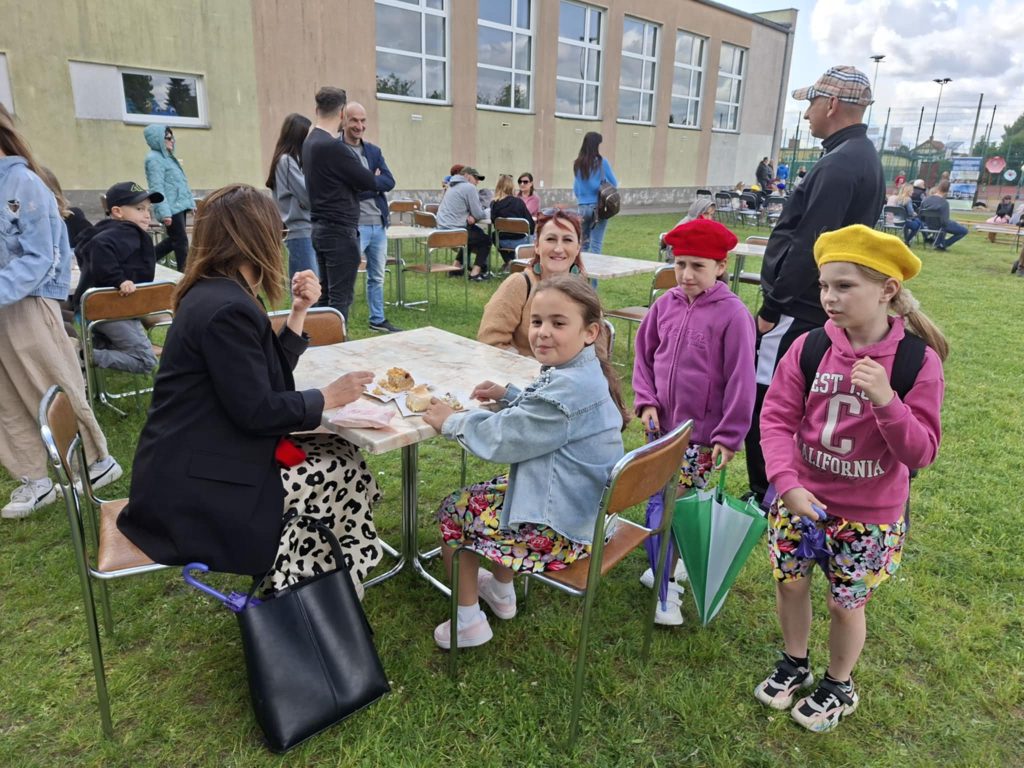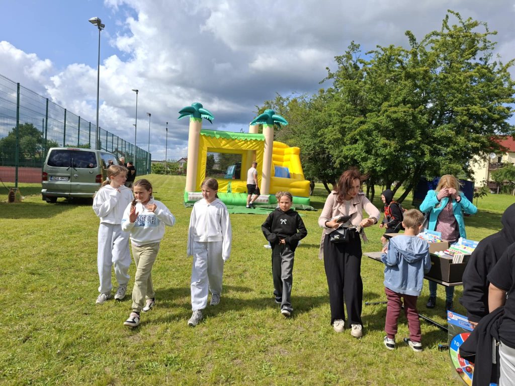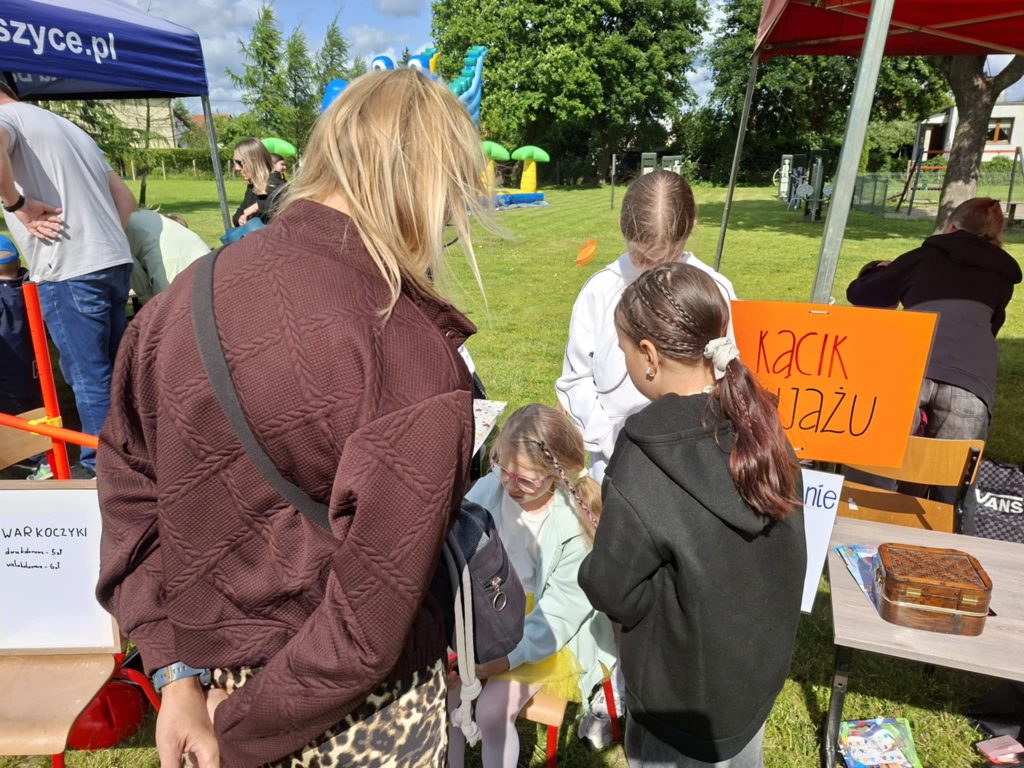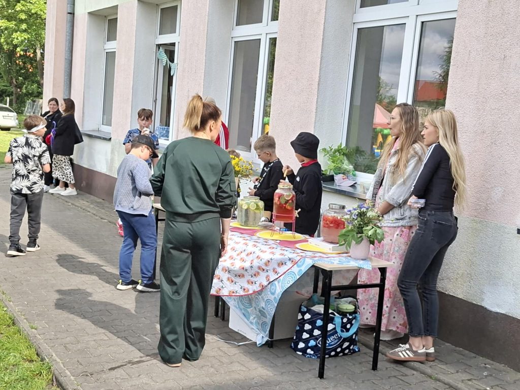 Na wszystkich czekało wiele atrakcji: sportowe zmagania, zabawy muzyczne, dmuchańce, konkursy oraz różnorodne strefy tematyczne – m.in. kącik rozmaitości, książki, fryzjerski, plastyczny i makijażu. Dużym zainteresowaniem cieszyła się także strefa naukowa, gdzie uczniowie, pod czujnym okiem wychowawcy, prowadzili ciekawe doświadczenia i eksperymenty – zarówno efektowne, jak i edukacyjne. Nie zabrakło też przysmaków – domowych ciast, galaretek, owoców, waty cukrowej, a także grillowanych kiełbasek. Rodzice zadbali również o zdrowe, orzeźwiające lemoniady – idealne w ciepłe popołudnie.
