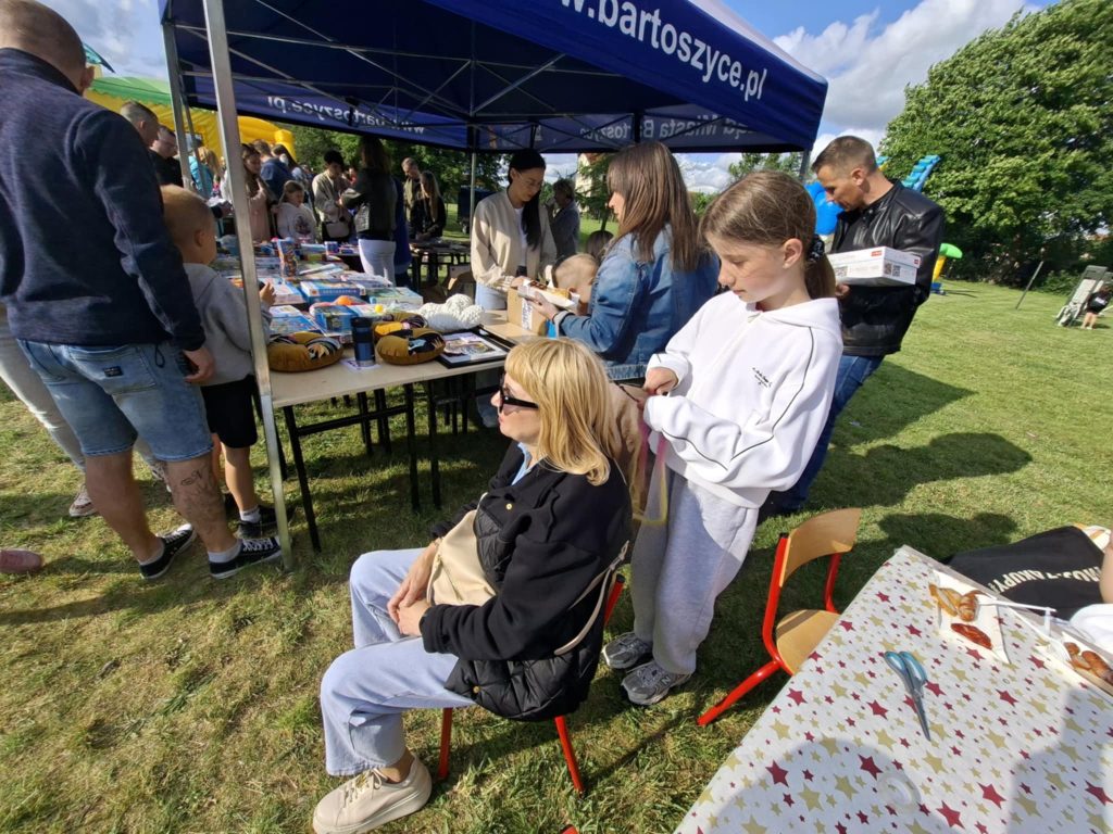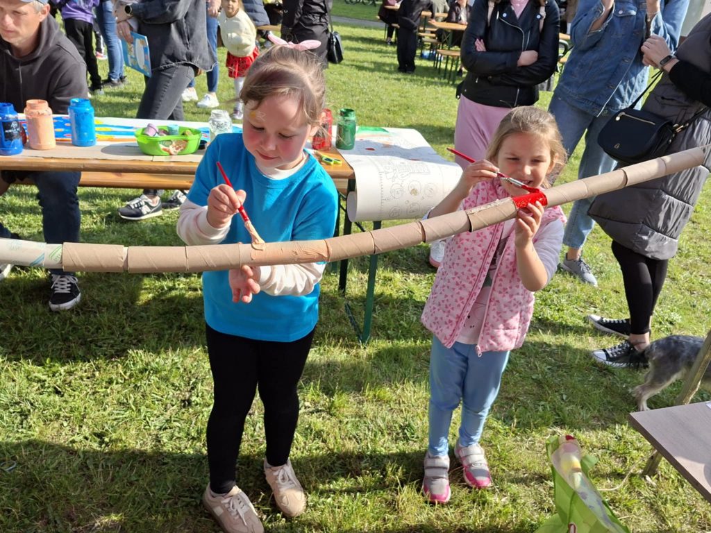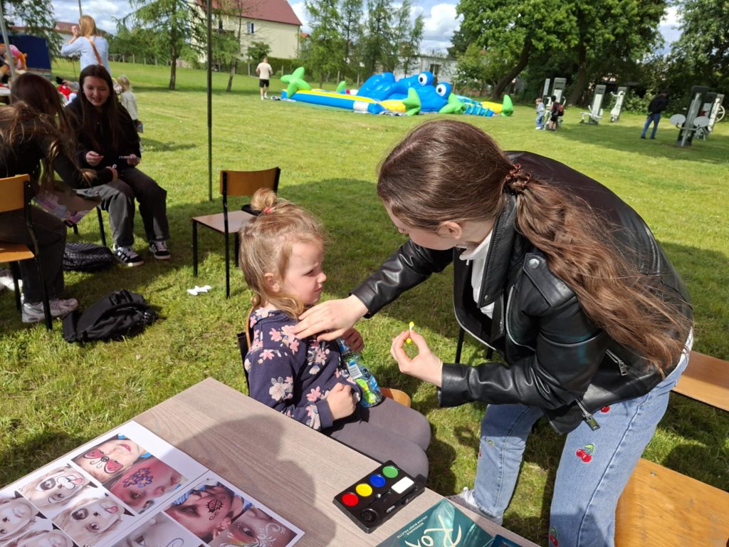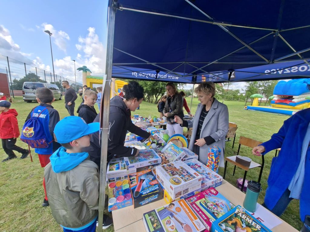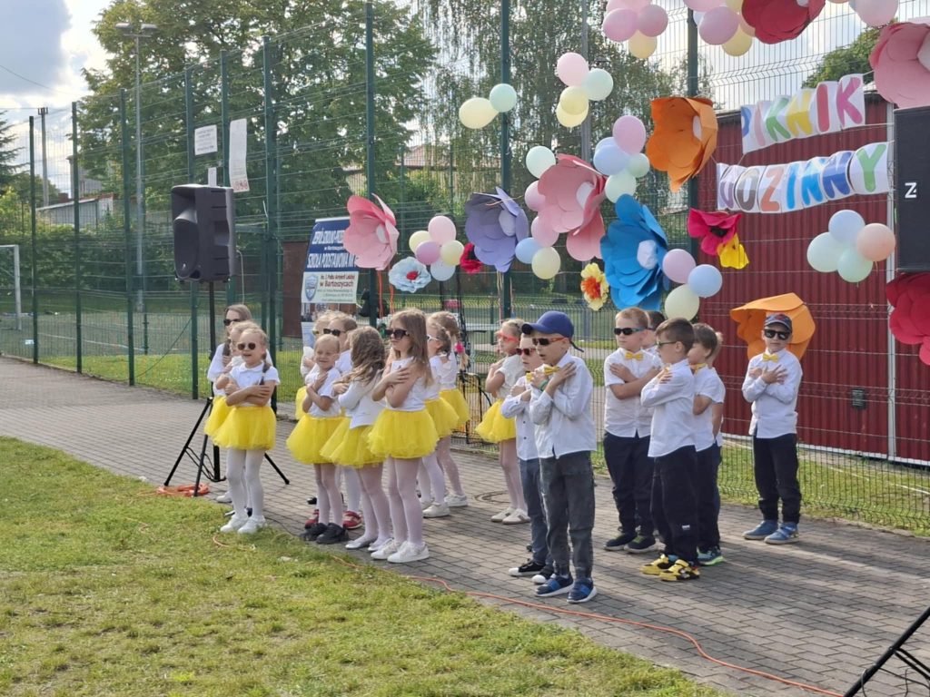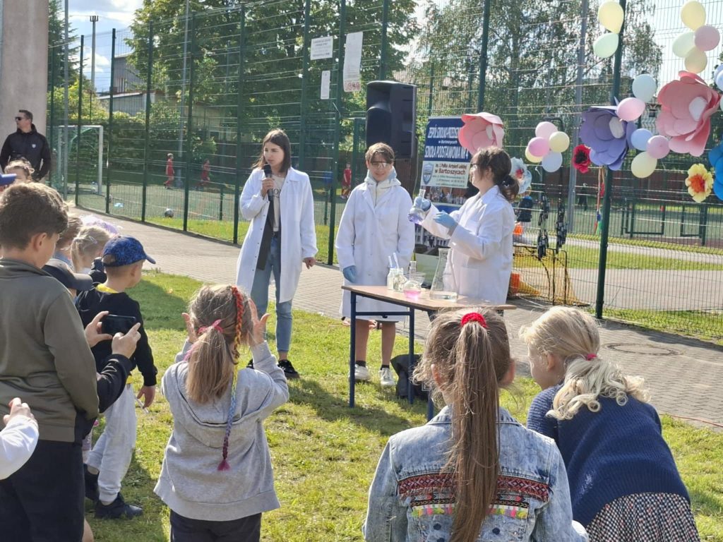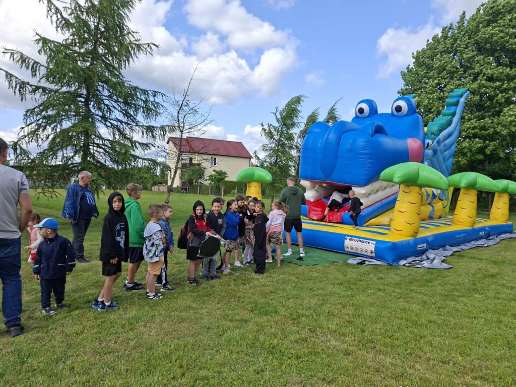 Na wszystkich czekało wiele atrakcji: sportowe zmagania, zabawy muzyczne, dmuchańce, konkursy oraz różnorodne strefy tematyczne – m.in. kącik rozmaitości, książki, fryzjerski, plastyczny i makijażu. Dużym zainteresowaniem cieszyła się także strefa naukowa, gdzie uczniowie, pod czujnym okiem wychowawcy, prowadzili ciekawe doświadczenia i eksperymenty – zarówno efektowne, jak i edukacyjne. Nie zabrakło też przysmaków – domowych ciast, galaretek, owoców, waty cukrowej, a także grillowanych kiełbasek. Rodzice zadbali również o zdrowe, orzeźwiające lemoniady – idealne w ciepłe popołudnie.