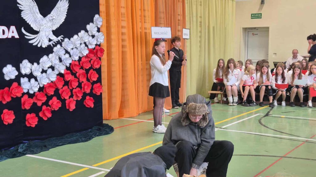 Całość wydarzenia miała podniosły, a zarazem pełen ciepła charakter. Była to nie tylko lekcja historii, ale również okazja do wspólnego przeżywania wartości, które łączą nas jako wspólnotę – wolności, tożsamości i dumy z bycia Polakiem. Dziękujemy wszystkim uczniom i nauczycielom za zaangażowanie w przygotowanie tej pięknej uroczystości.