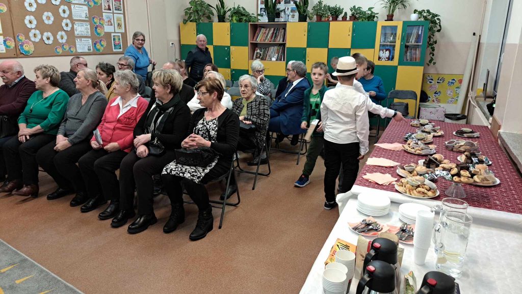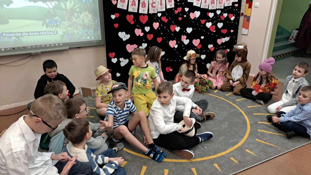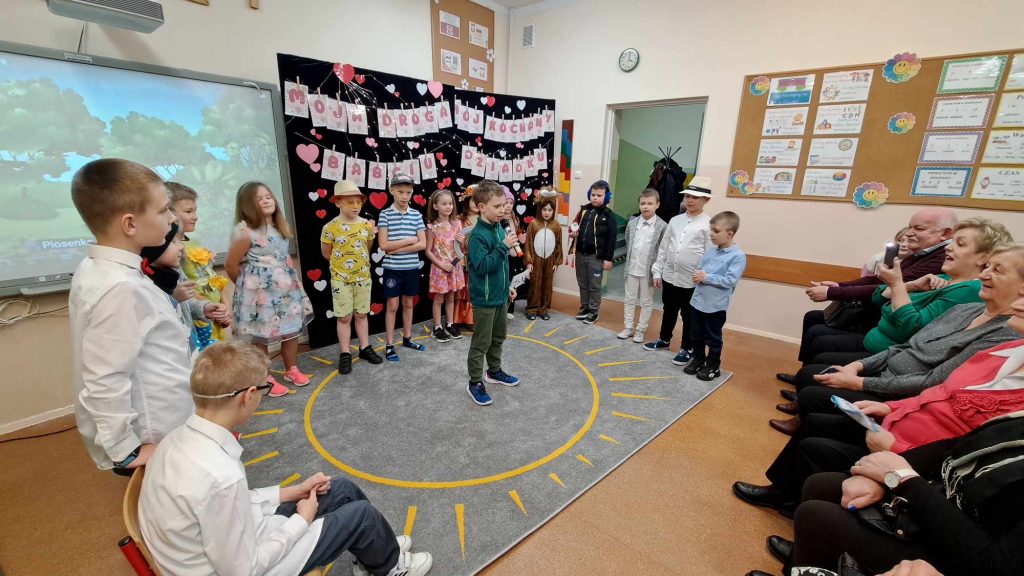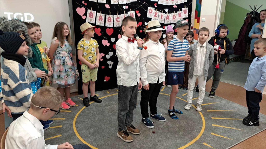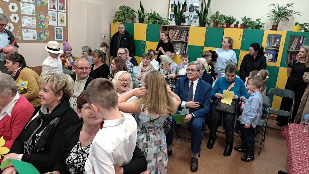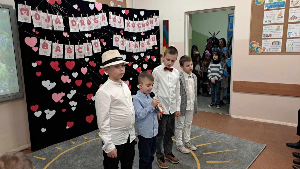 Dzisiejszy dzień w naszej szkole był pełen wzruszeń i radości, ponieważ klasa IIb pod czujnym okiem wychowawcy zorganizowała przedstawienie z okazji Dnia Babci i Dziadka. Na widowni zasiedli dumni dziadkowie i babcie gotowi do oklasków 😉 Dzieci złożyły serdeczne życzenia. Nie zapomniały życzyć wysokiej emerytury dla dziadków, pragnąc, aby każda chwila była dla nich radosna i pełna spokoju. Nie obyło się bez łez wzruszenia. Dodatkową atrakcją występu był konkurs, w którym babcie i dziadkowie odgadywali swoje portrety narysowane przez dzieci. To zadanie dostarczyło wielu śmiechu i radości zarówno dzieciom, jak i dorosłym. Na zakończenie wnuczęta wręczyły swoim gościom własnoręcznie wykonane laurki oraz zaprosiły na słodki poczęstunek. Serdecznie dziękujemy rodzicom za pomoc w przygotowaniu tej uroczystości i za ich ogromne zaangażowanie w organizację dzisiejszego wydarzenia.