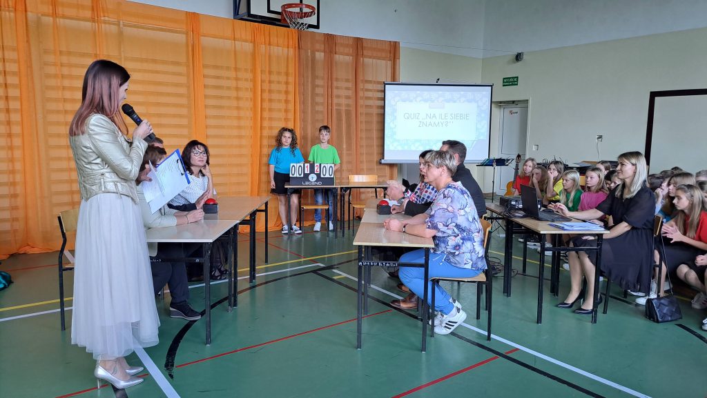 I właśnie z tej okazji, w piątek, 13 października nasza społeczność szkolna spotkała się na akademii, podczas której zaprezentowano program satyryczny pt. „Lekcje wytrzymałości”, piękne piosenki oraz wspaniały, skoczny taniec- Belgijkę. Tego dnia również nauczyciele i pracownicy szkoły mieli okazję sprawdzić „Na ile siebie znają”, biorąc udział w quizie, który wzbudził wiele pozytywnych emocji. Uczniowie pięknymi wierszami wyrazili swoje podziękowanie za serce, uśmiech… i przeprosili za psoty, figle…. 😁.