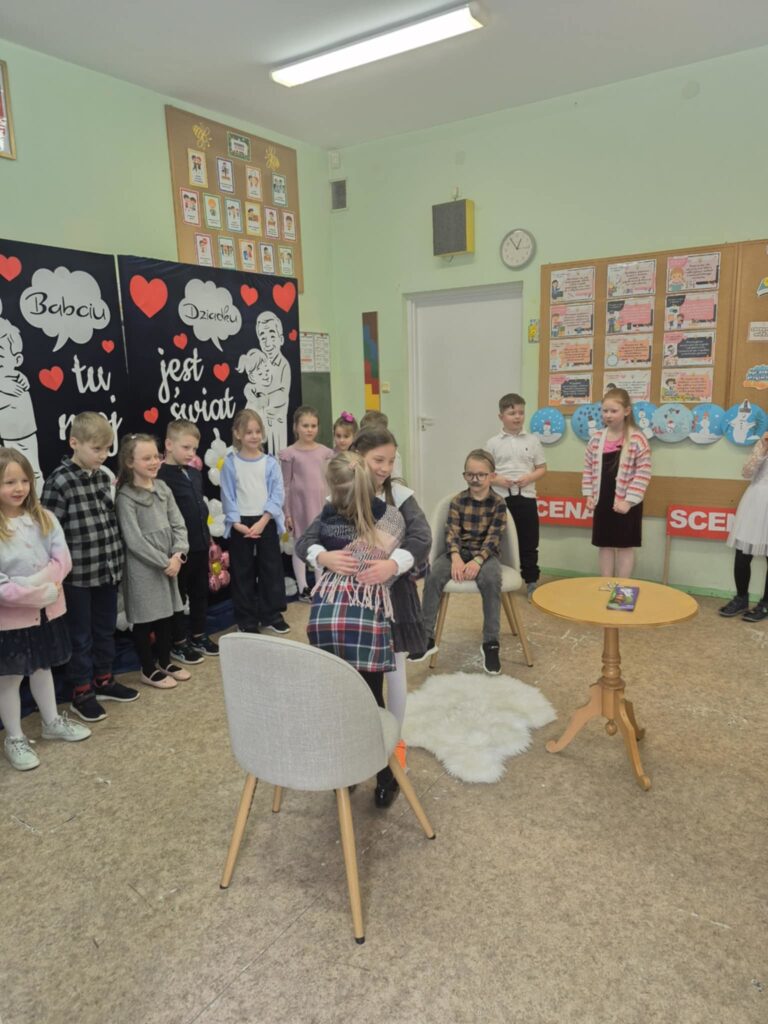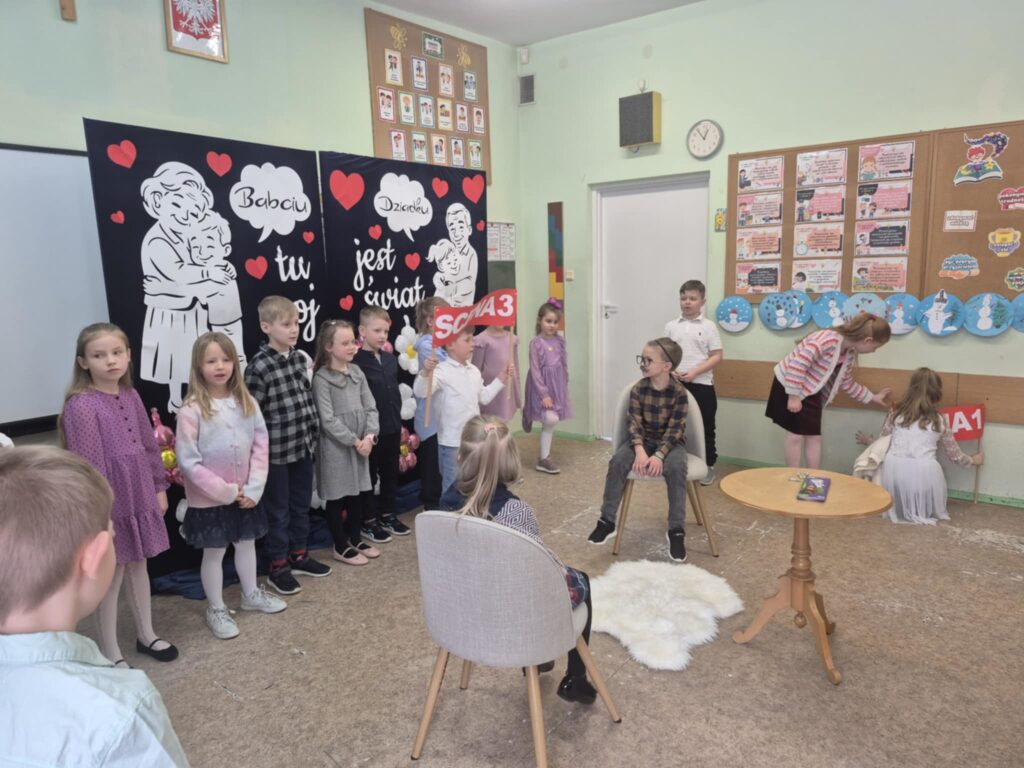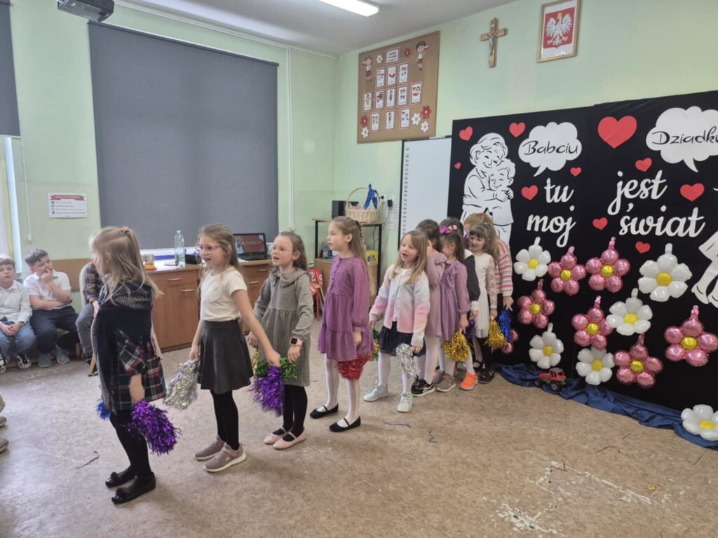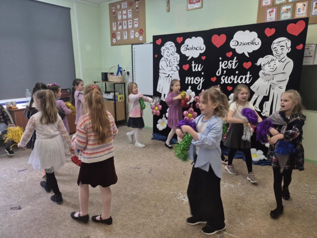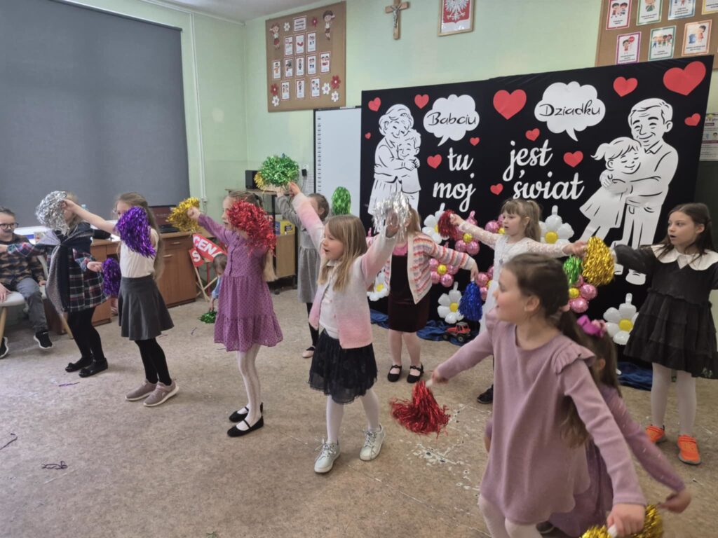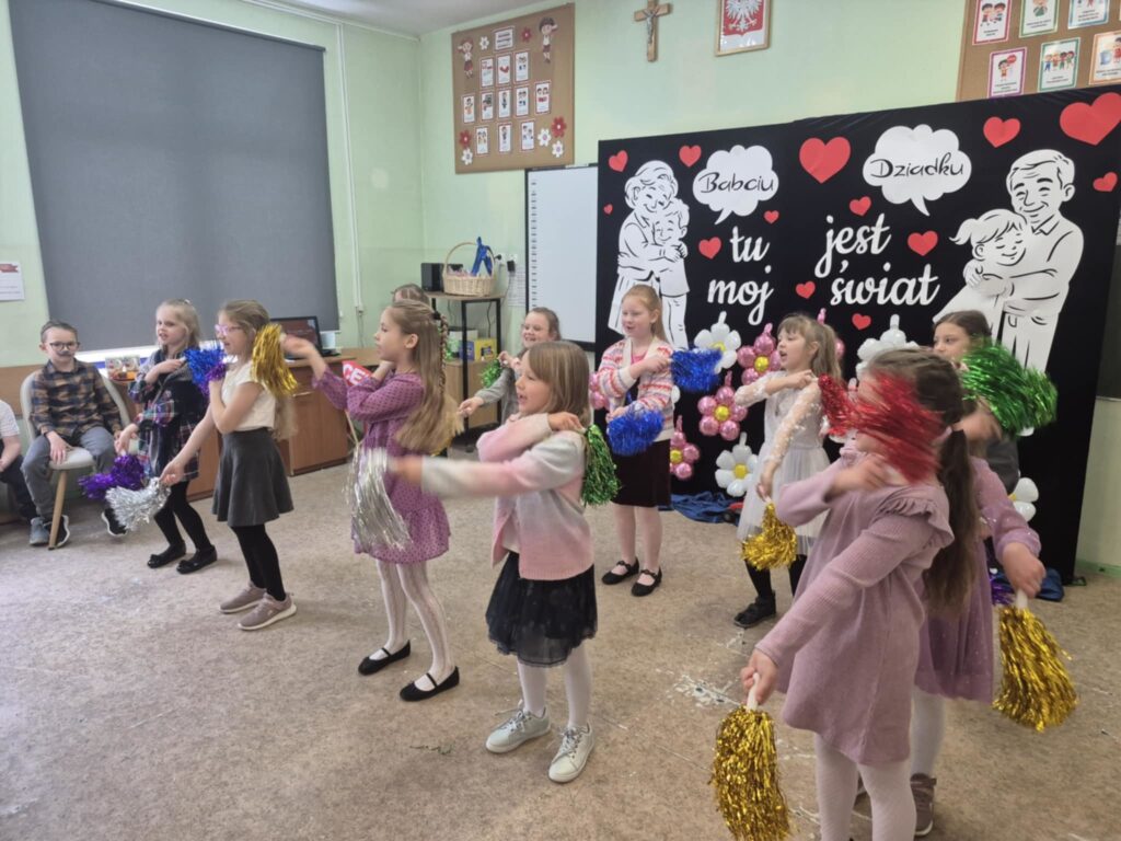 Dzieci zaprezentowały piękny występ artystyczny. Uczniowie z ogromnym zaangażowaniem i uśmiechem na twarzach wystąpili przed swoimi ukochanymi Babciami i Dziadkami, dziękując im w ten sposób za miłość, troskę i wsparcie.