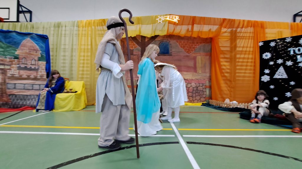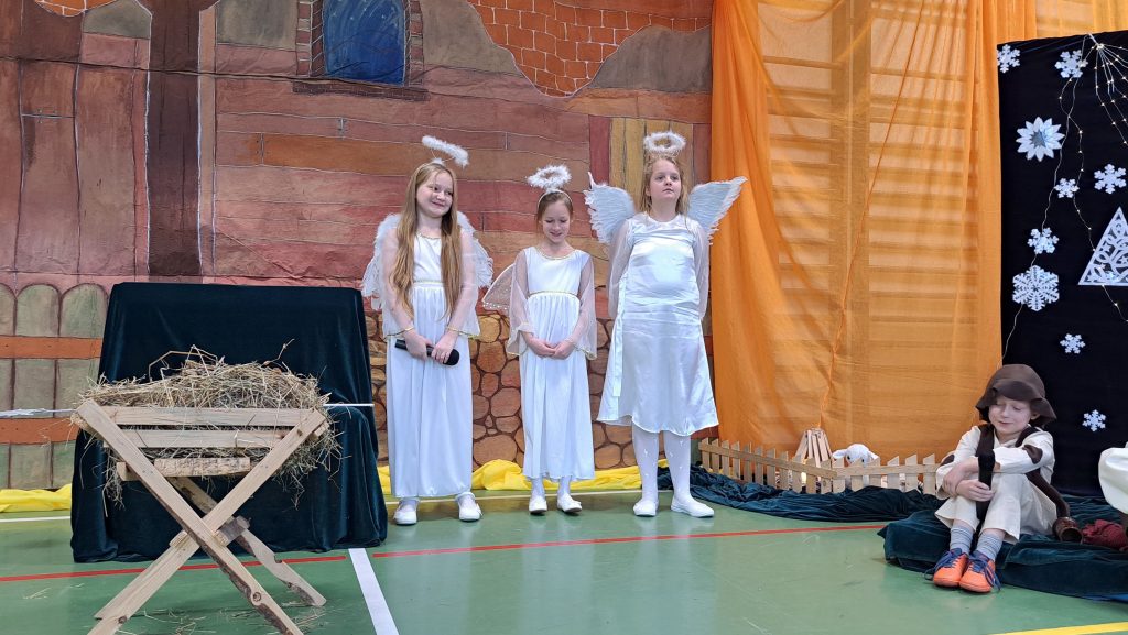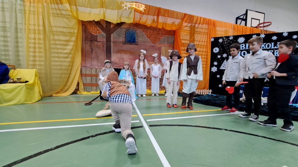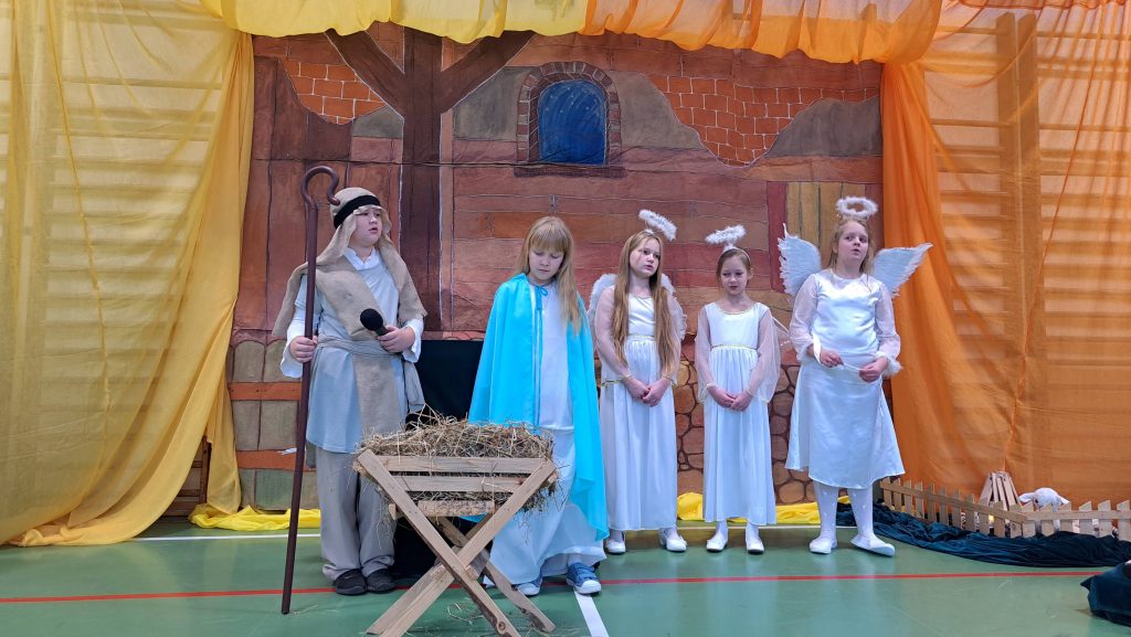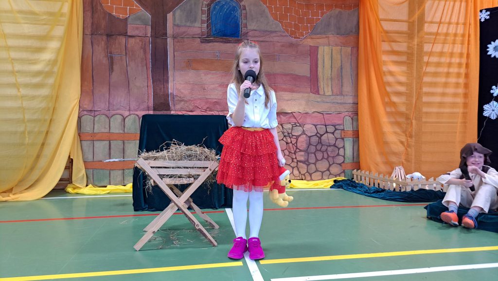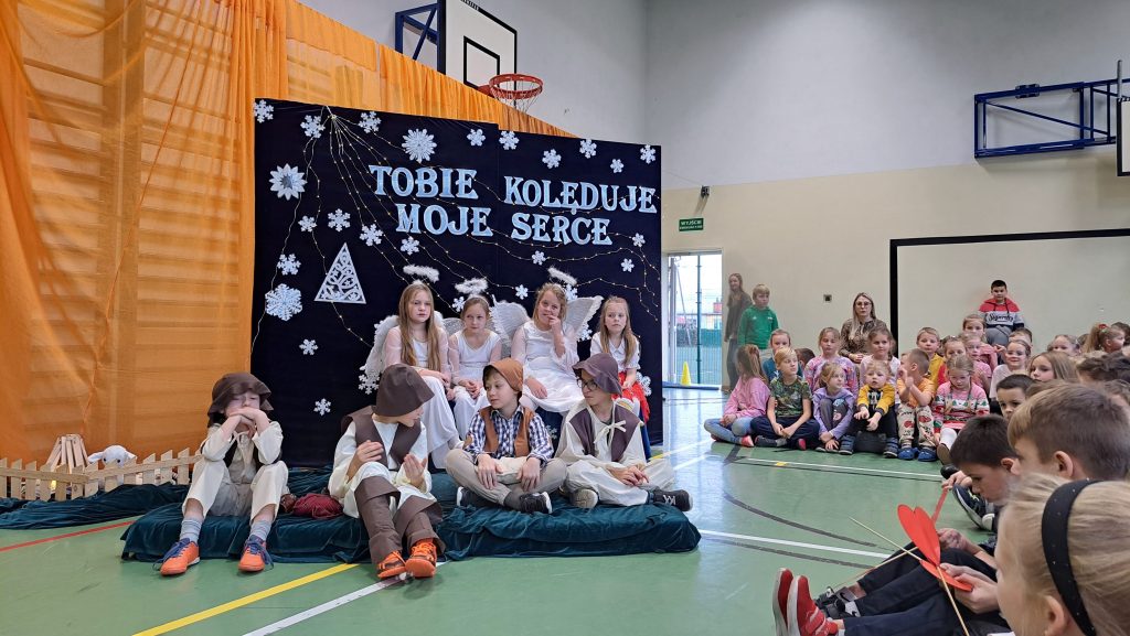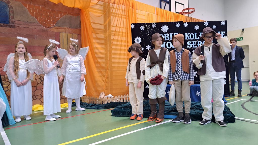 Dzisiaj odbyły się w naszej szkole Jasełka, które przygotowała klasa IIIb pod kierunkiem p. Małgorzaty Mańkowskiej. W magiczny nastrój Świąt Bożego Narodzenia wprowadziła nas pastorałka “Pachnie Świętami” wykonana przez uczennicę klasy IIa. Szkolni aktorzy zaprezentowali tradycyjną historię narodzin Jezusa Chrystusa. Ponadto widzowie usłyszeli piękne piosenki, w których uczniowie oddawali hołd narodzonemu Zbawicielowi. Atmosfera była niezwykle wzruszająca, a scenografia i kostiumy dodały całości niepowtarzalnego uroku. Występ zakończył się gromkimi brawami.  Na twarzach uczniów i nauczycieli widać było zadowolenie i dumę. Dzięki zaangażowaniu uczniów, nauczycieli oraz rodziców poczuliśmy dzisiaj prawdziwego ducha świąt, który połączył nas w harmonii i wspólnej radości.