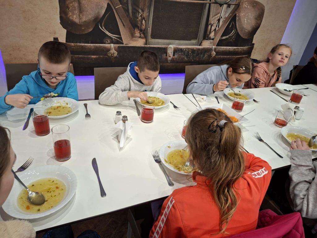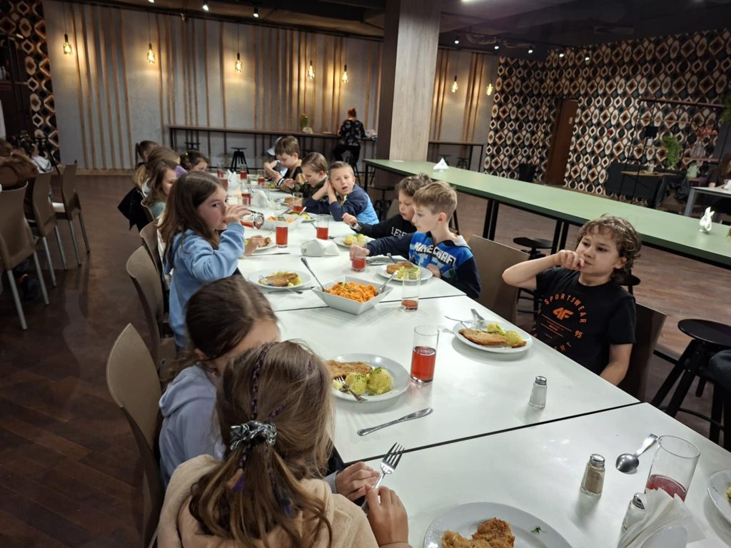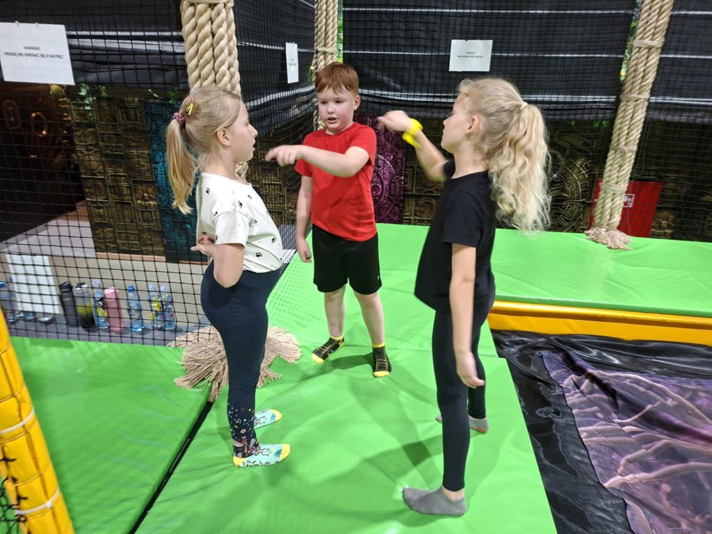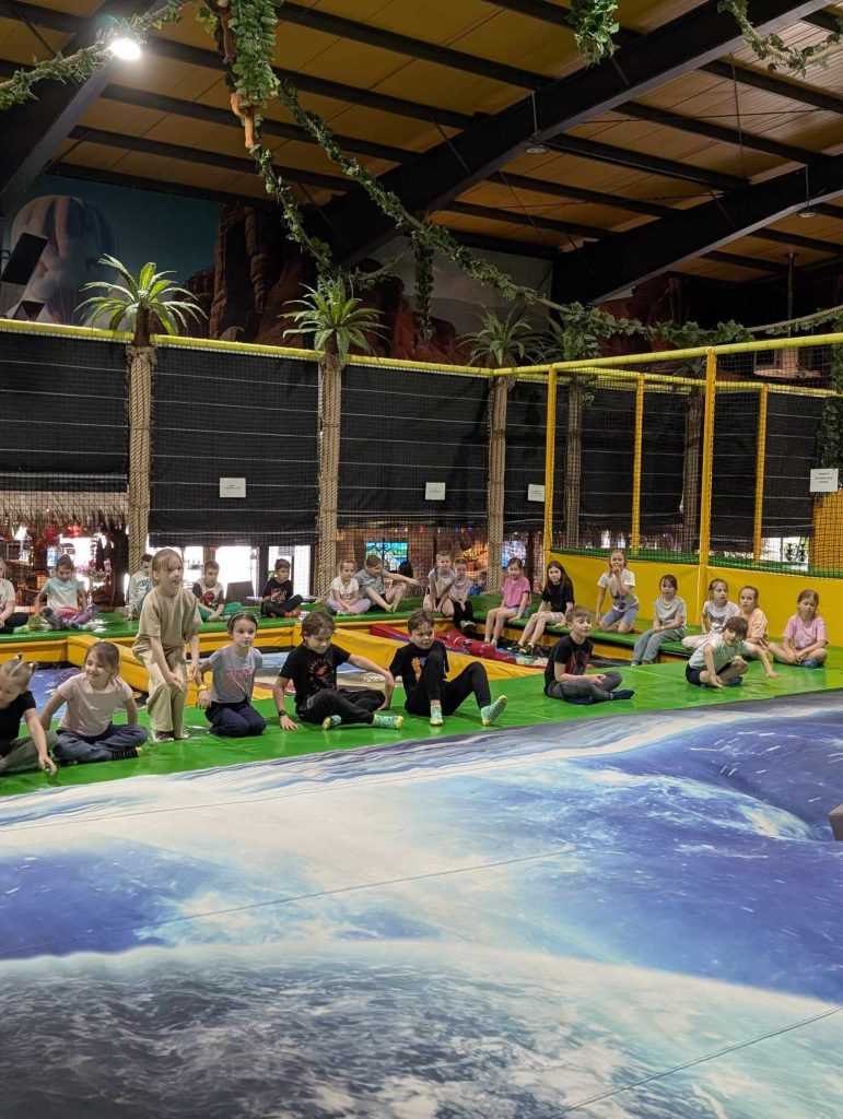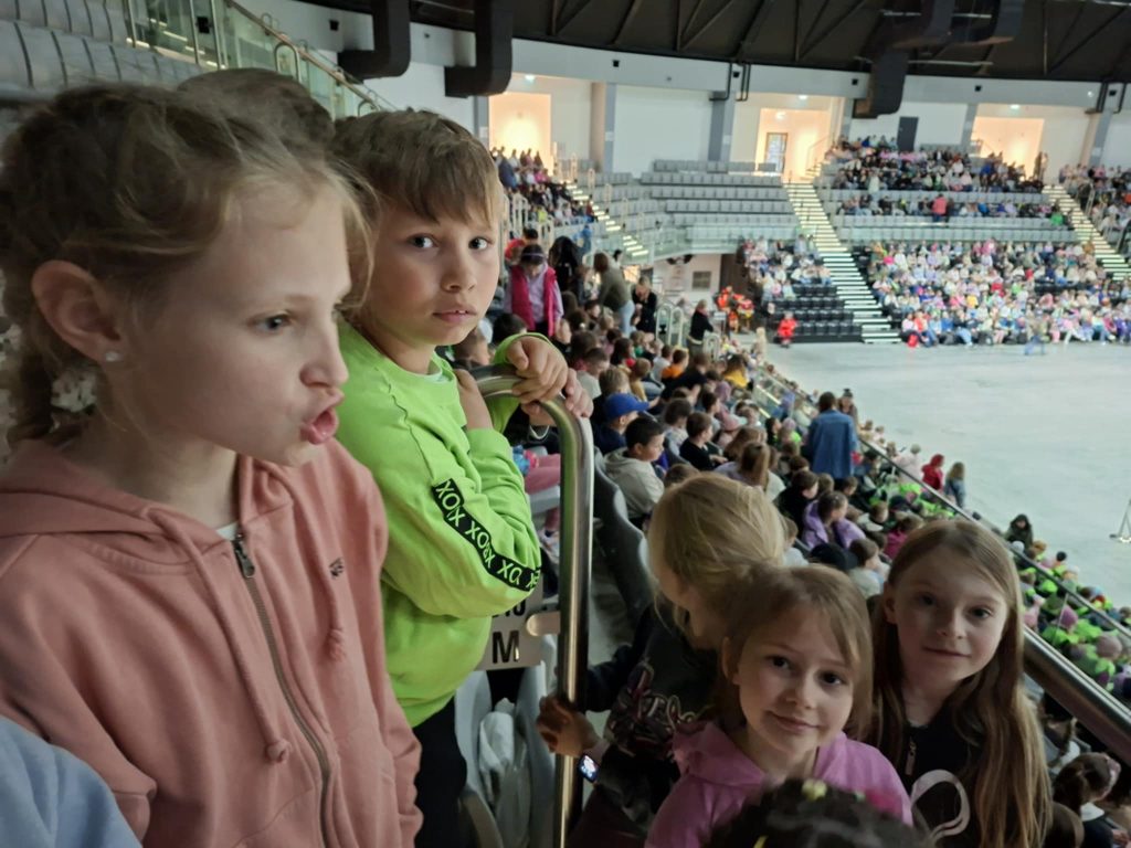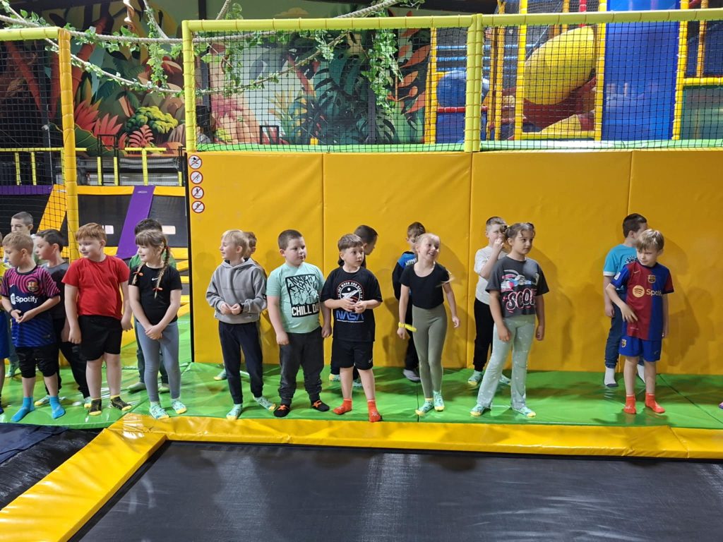 19 maja uczniowie klas I–III wyruszyli na długo wyczekiwaną wycieczkę do Olsztyna. Już od samego rana towarzyszyła nam wspaniała pogoda i jeszcze lepsze nastroje! Naszą przygodę rozpoczęliśmy od wizyty w Parku Trampolin, gdzie dzieci mogły dać upust swojej energii, skacząc, bawiąc się i śmiejąc do woli. Następnie udaliśmy się na spacer po starówce Olsztyna. Kulminacją dnia było niezwykłe widowisko – rewia na lodzie pt. „Niezwykłe przygody Sindbada Żeglarza”. Spektakl oczarował wszystkich – piękna scenografia, bajkowe kostiumy, wspaniała muzyka i popisy łyżwiarskie sprawiły, że dzieci oglądały przedstawienie z zapartym tchem. Po wspólnym obiedzie, pełni emocji i niezapomnianych wrażeń, wróciliśmy do szkoły. Uśmiechy na twarzach dzieci były najlepszym dowodem na to, jak bardzo udana była ta wyprawa.