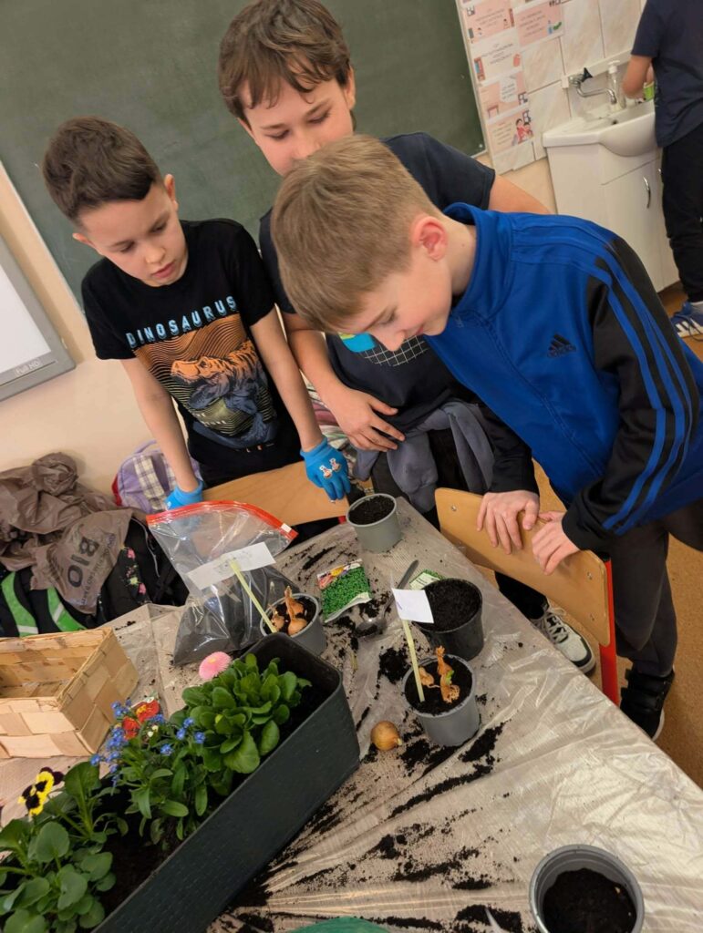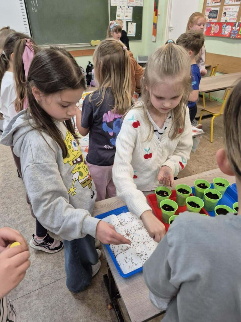 W naszej szkole zawitała prawdziwa wiosna! Klasy 1a oraz 3a zamieniły swoje sale lekcyjne w zielone ogrody. Dzieci z wielkim zapałem zabrały się za prace ogrodnicze, ucząc się cierpliwości i pielęgnacji roślin. ​W klasie 1a najmłodsi postawili na witaminy i zasadzili w doniczkach soczysty szczypiorek oraz rzeżuchę. Starsi koledzy z klasy 3a zaszaleli z różnorodnością! W ich klasowym ogródku pysznią się już kwiaty, nowalijki, owies oraz wielkanocna rzeżucha. ​Teraz z niecierpliwością czekamy na pierwsze plony.