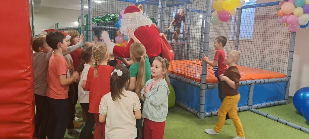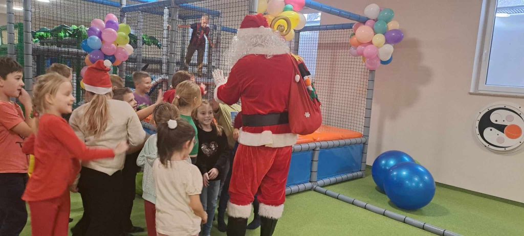 Dzisiejszy mikołajkowy dzień był pełen wrażeń oraz niespodzianek a największą atrakcją była wycieczka do „Dębolandii” 😁. Bawiliśmy się świetnie. Mieliśmy możliwość skorzystania ze ścianki spinaczkowej, basenu kulkowego, karuzeli, sali bilardowej. Wielką niespodziankę sprawił nam Mikołaj, który przyszedł nas odwiedzić. Bawił się razem z nami, organizował konkursy, rozdawał cukierki i odprowadził do autokaru. Z każdym z nas „przybił piątkę”. Pełni wrażeń wróciliśmy do szkoły.