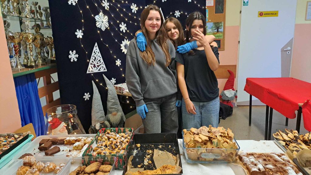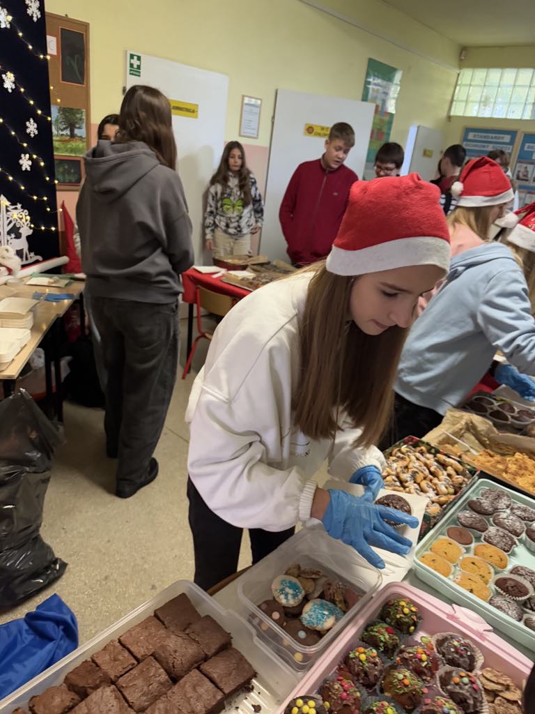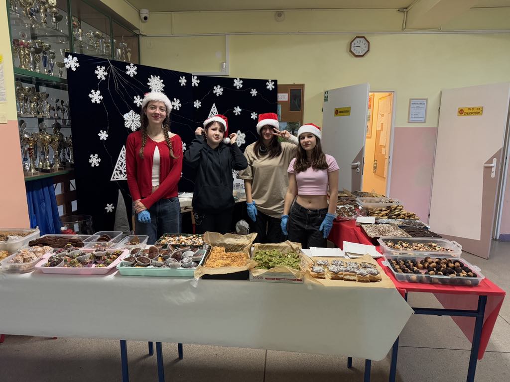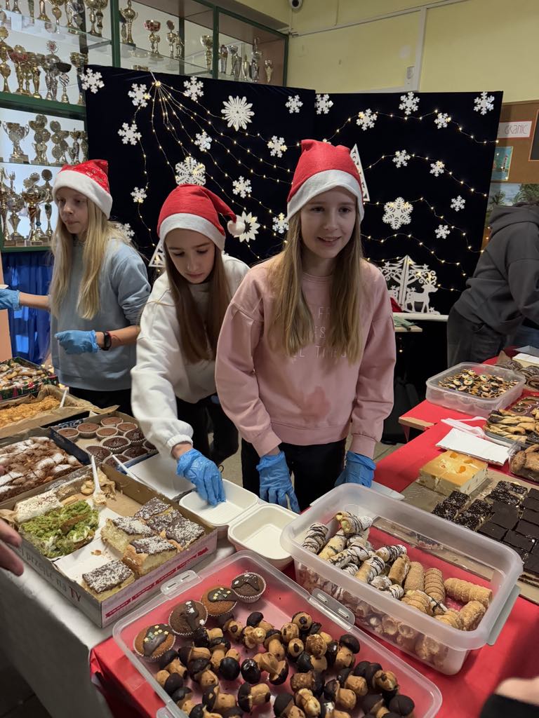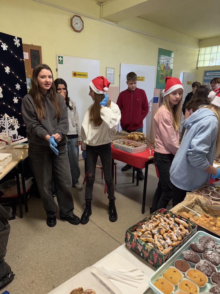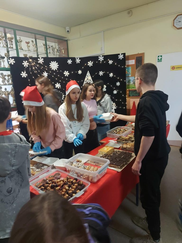 Podczas kiermaszu można było zakupić ciasta, babeczki, pierniczki oraz inne przepyszne wypieki, które sprzedawane były przez uczniów ze Szkolnego Koła Wolontariatu. Dzięki ich zaangażowaniu i pracy, kiermasz cieszył się dużym zainteresowaniem, a zebrane fundusze na pewno przyczynią się do poprawy warunków w naszej szkole.