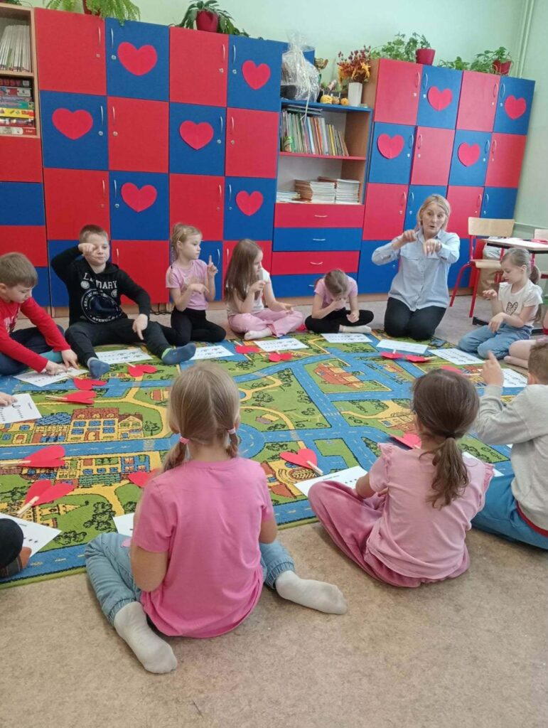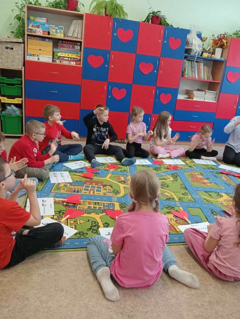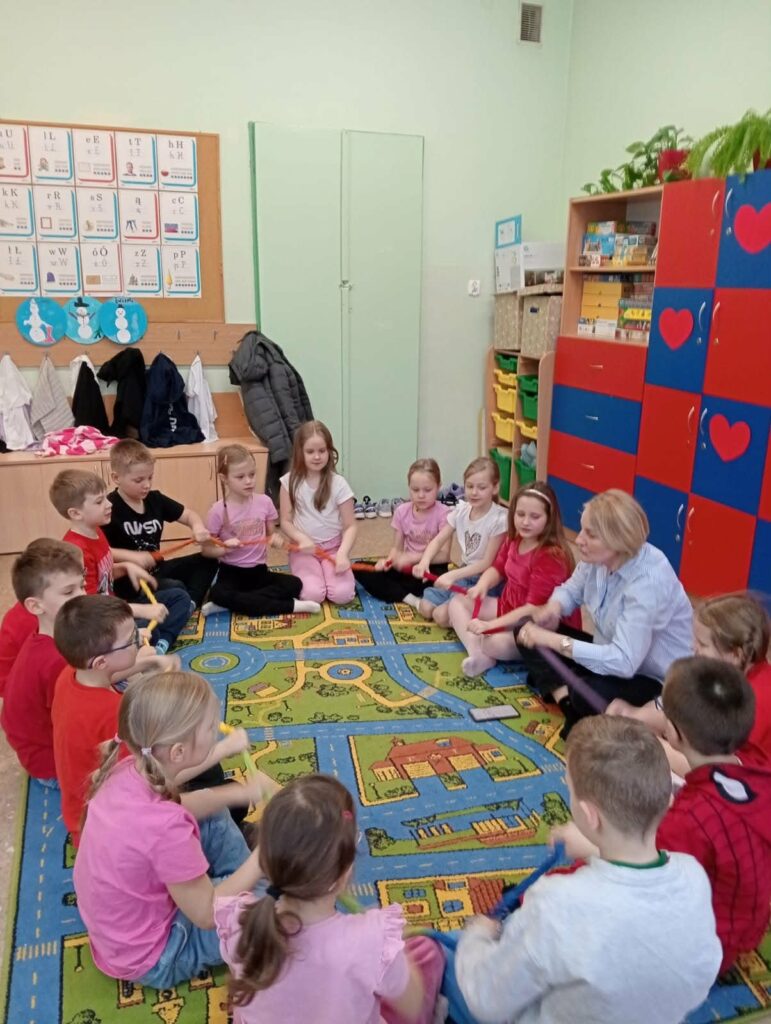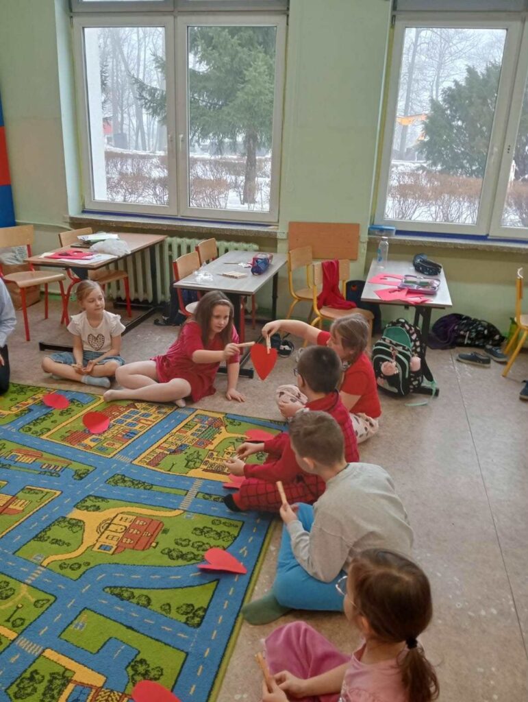 Dnia 13 lutego 2026 r. uczniowie klasy 1b wzięli udział w warsztatach prowadzonych przez Panią Elżbietę Żuławską z Poradni Psychologiczno-Pedagogicznej w Bartoszycach. Zajęcia muzyczno-ruchowe pt. „Razem się bawimy, razem się uczymy” miały na celu rozwijanie kompetencji emocjonalno-społecznych uczniów.