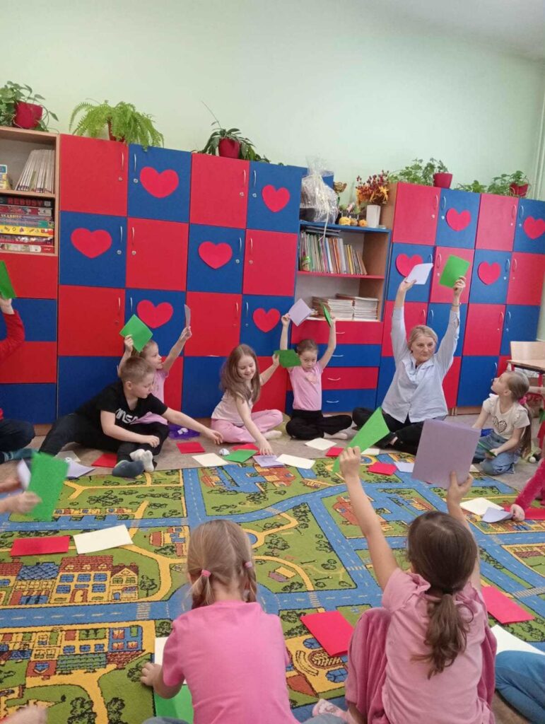 Dzieci z dużym zainteresowaniem i zaangażowaniem uczestniczyły w proponowanych aktywnościach, chętnie brały udział w zabawach oraz ćwiczeniach, które sprzyjały integracji, współpracy i lepszemu poznawaniu własnych emocji.