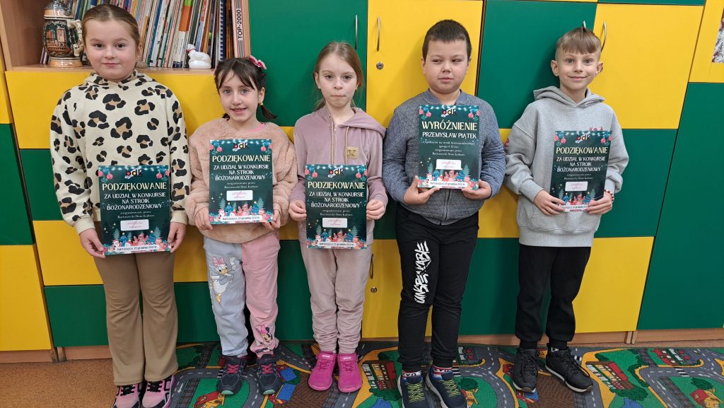 Serdecznie gratulujemy uczniom klasy II b za ich zaangażowanie i udział w konkursie na Stroik Bożonarodzeniowy. Dzieci wykonały swoje stroiki w szkole pod czujnym okiem rodziców. Wręczenie nagród odbyło się podczas Świątecznego Jarmarku Sztuki Ludowej i Rękodzieła Artystycznego w Bartoszycach.