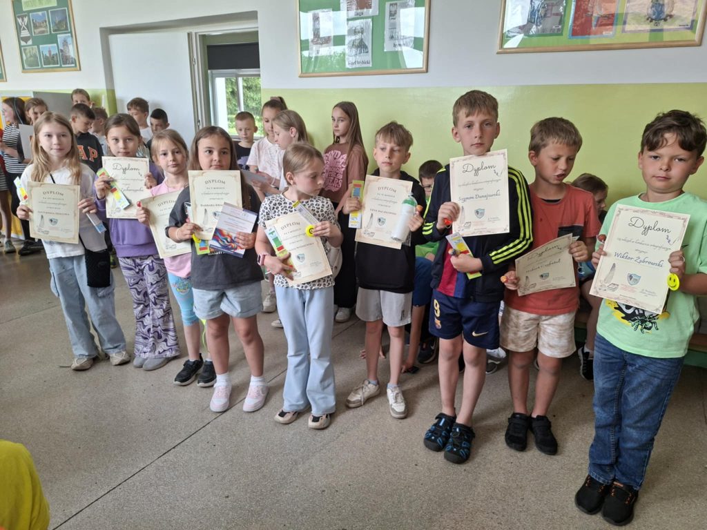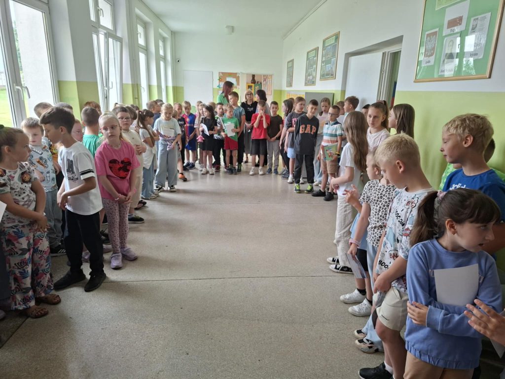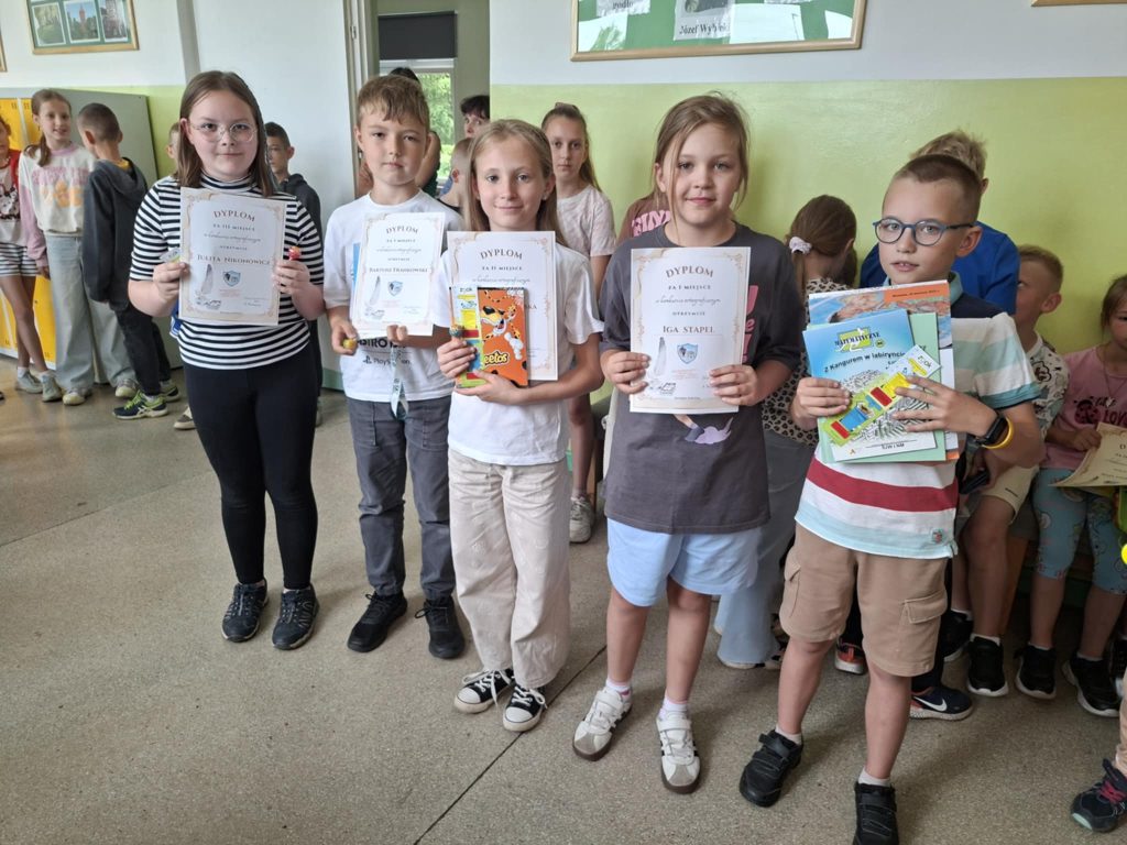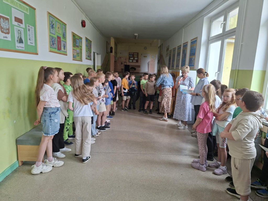 Dnia 23 czerwca 2025 r. w naszej szkole odbył się apel klas I–III, podsumowujący wyniki klasyfikacji oraz osiągnięcia uczniów w II półroczu roku szkolnego 2024/2025. Podczas apelu wręczono nagrody i dyplomy uczniom biorącym udział w prestiżowych konkursach, takich jak: Ogólnopolski Konkurs Logicznego Myślenia, Ogólnopolski Konkurs „Kangur Matematyczny” oraz wewnątrzszkolny konkurs ortograficzny. Doceniono nie tylko wysokie wyniki, ale również zaangażowanie oraz rozwijanie pasji i talentów uczniów. W trakcie apelu ogłoszono również najlepszego czytelnika klas I–III, co miało na celu promowanie czytelnictwa i rozbudzanie zainteresowania książką wśród najmłodszych uczniów. Ważnym momentem uroczystości było symboliczne pożegnanie klas trzecich przez uczniów klas pierwszych. Młodsi koledzy wręczyli starszym pamiątkowe upominki, życząc im sukcesów w dalszym etapie edukacji. Zwieńczeniem wydarzenia była rozmowa na temat zasad bezpieczeństwa podczas zbliżających się wakacji. Apel przebiegł w miłej i uroczystej atmosferze, stanowiąc ważny moment podsumowania pracy uczniów oraz przygotowania ich do bezpiecznego i zasłużonego wypoczynku.