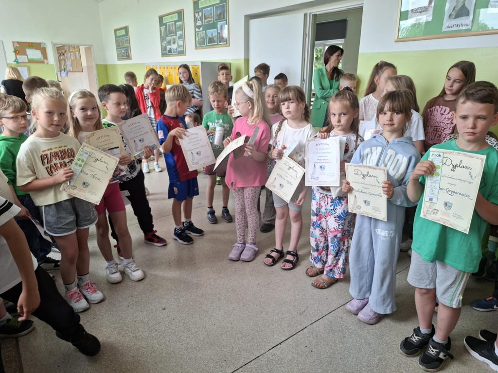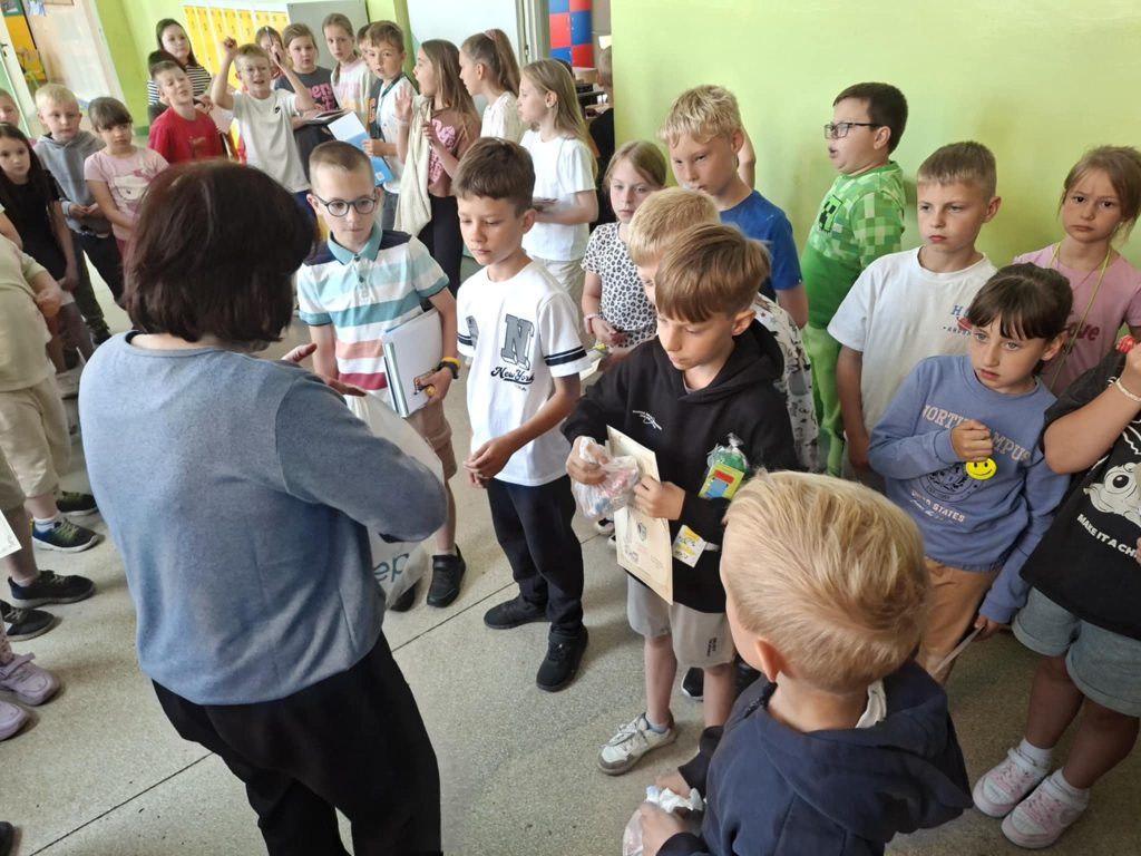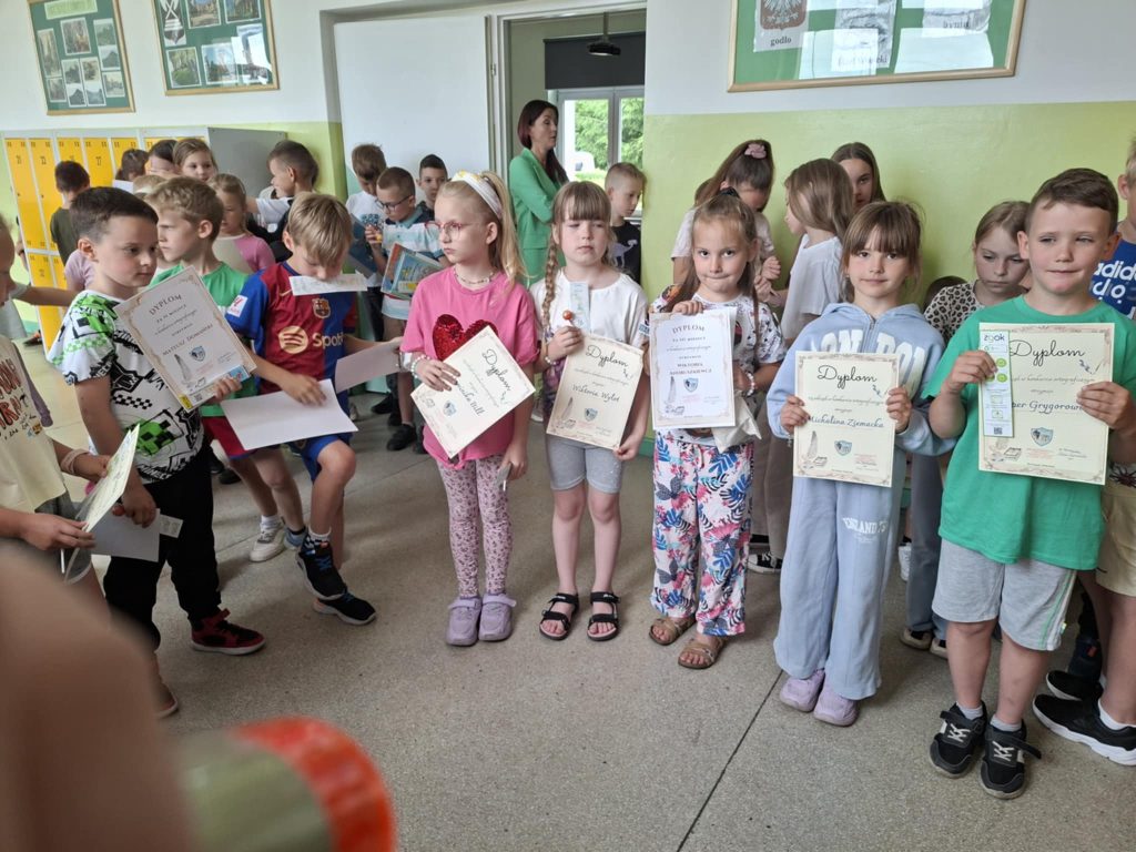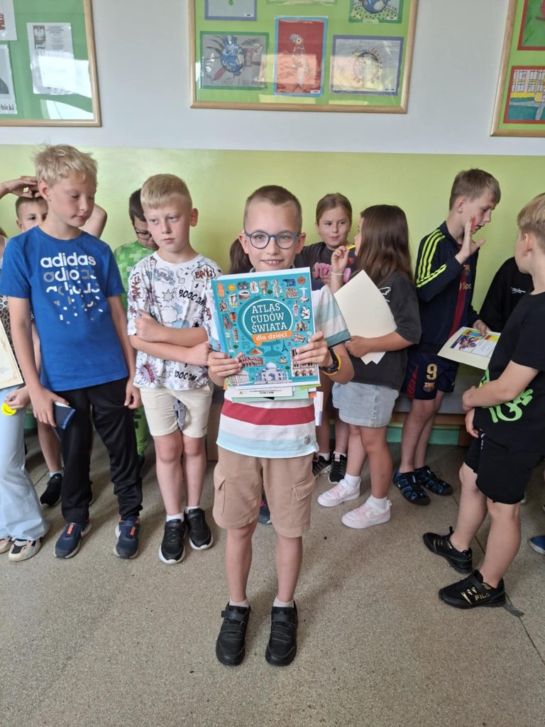 Dnia 23 czerwca 2025 r. w naszej szkole odbył się apel klas I–III, podsumowujący wyniki klasyfikacji oraz osiągnięcia uczniów w II półroczu roku szkolnego 2024/2025. Podczas apelu wręczono nagrody i dyplomy uczniom biorącym udział w prestiżowych konkursach, takich jak: Ogólnopolski Konkurs Logicznego Myślenia, Ogólnopolski Konkurs „Kangur Matematyczny” oraz wewnątrzszkolny konkurs ortograficzny. Doceniono nie tylko wysokie wyniki, ale również zaangażowanie oraz rozwijanie pasji i talentów uczniów. W trakcie apelu ogłoszono również najlepszego czytelnika klas I–III, co miało na celu promowanie czytelnictwa i rozbudzanie zainteresowania książką wśród najmłodszych uczniów. Ważnym momentem uroczystości było symboliczne pożegnanie klas trzecich przez uczniów klas pierwszych. Młodsi koledzy wręczyli starszym pamiątkowe upominki, życząc im sukcesów w dalszym etapie edukacji. Zwieńczeniem wydarzenia była rozmowa na temat zasad bezpieczeństwa podczas zbliżających się wakacji. Apel przebiegł w miłej i uroczystej atmosferze, stanowiąc ważny moment podsumowania pracy uczniów oraz przygotowania ich do bezpiecznego i zasłużonego wypoczynku.