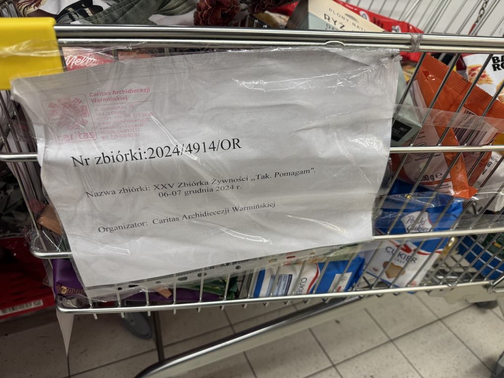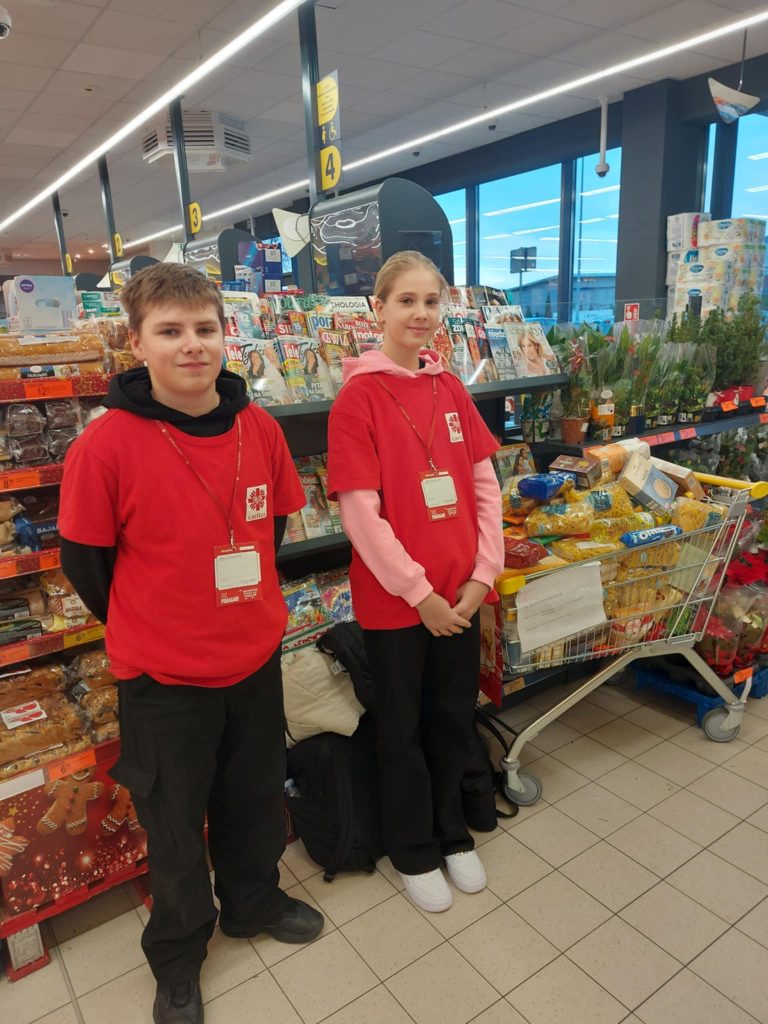 Już po raz kolejny nasi uczniowie w ramach Szkolnego Koła Wolontariatu w dniach 6-7 grudnia przyłączyli się do zbiórki żywności organizowanej przez Caritas Archidiecezji Warmińskiej pt: „Tak. Pomagam”. Wolontariusze zbierali żywności w sklepie Biedronka. Uczniowie z wielkim zaangażowaniem uczestniczyli w zbiórce, przyczyniając się do zgromadzenia znacznej ilości produktów spożywczych, które zostaną przekazane osobom w trudnej sytuacji materialnej przed świętami Bożego Narodzenia.
