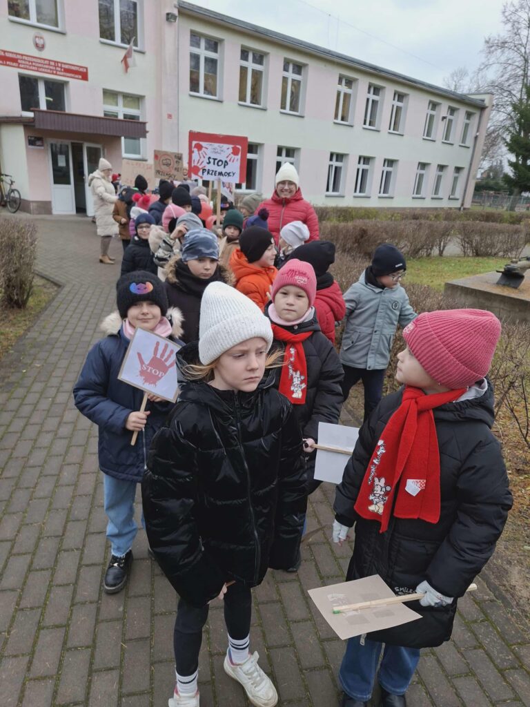 19 listopada uczniowie klas I–III naszej szkoły wzięli udział w marszu kończącym drugą edycję kampanii „Dzieciństwo bez przemocy”. Wspólnym krokiem dzieci wyraziły sprzeciw wobec przemocy i pokazały, że dobre dzieciństwo daje siłę.