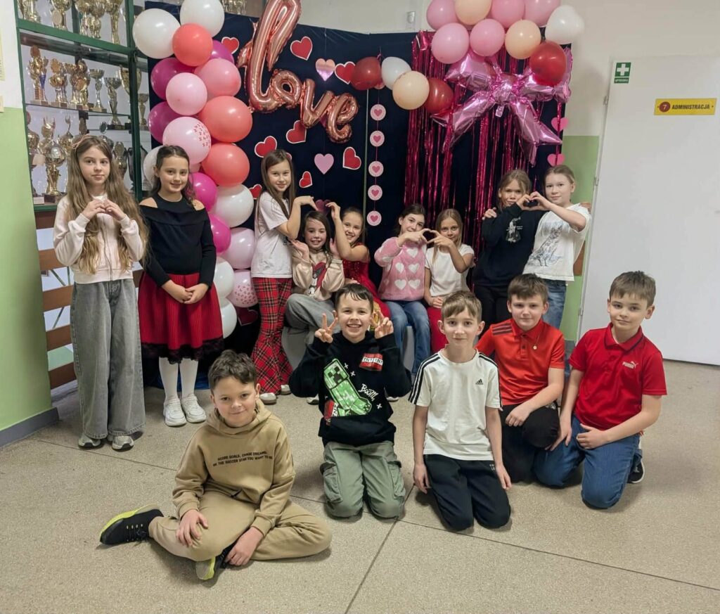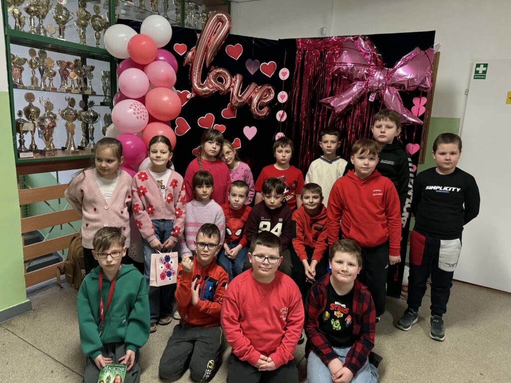 W naszej szkole zapanowała wyjątkowa, walentynkowa atmosfera, pełna uśmiechu i serdeczności. Obchody rozpoczęliśmy dyskoteką dla klas 4–7, przygotowaną przez Samorząd Uczniowski, która dostarczyła nam wielu radosnych chwil i była świetną okazją do wspólnej zabawy.