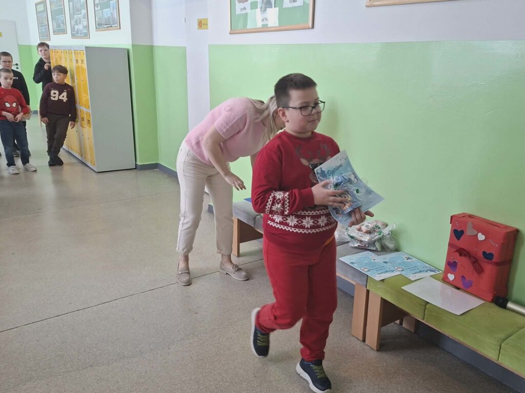 Kolejnego dnia działała Poczta Walentynkowa, a szkolne korytarze wypełniły się miłą muzyką i życzliwymi gestami. Z radością wręczaliśmy sobie kartki walentynkowe i miłe słowa. Najmłodsi uczniowie również otrzymali od swoich rodziców walentynkowe upominki, które sprawiły im wiele radości.