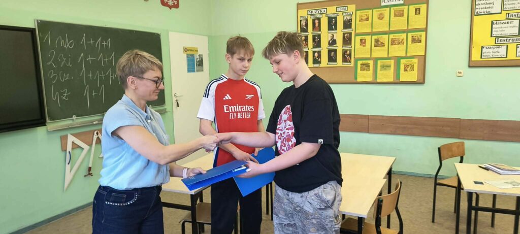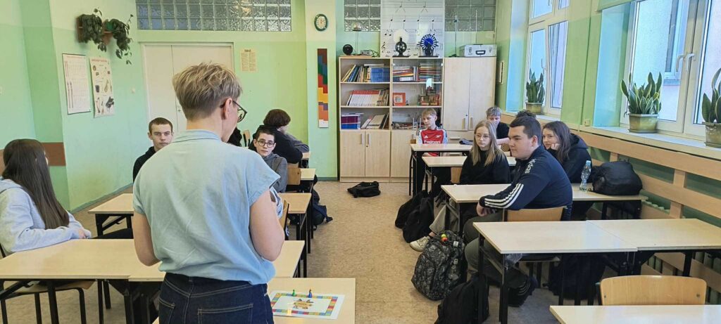 W zeszłym tygodniu uczniowie klas ósmych uczestniczyli w warsztatach z doradztwa zawodowego prowadzonych przez doradcę z Poradni Psychologiczno-Pedagogicznej. Zajęcia dotyczyły poznawania różnych zawodów, rynku pracy oraz możliwości dalszej edukacji w szkołach ponadpodstawowych. Podczas spotkania uczniowie wzięli udział w edukacyjnej grze zespołowej, w której rozwiązywali zadania i odpowiadali na pytania związane z wyborem przyszłej ścieżki edukacyjno-zawodowej. Na zakończenie każdy uczestnik otrzymał certyfikat „Eksperta Gry o Pracę”.
