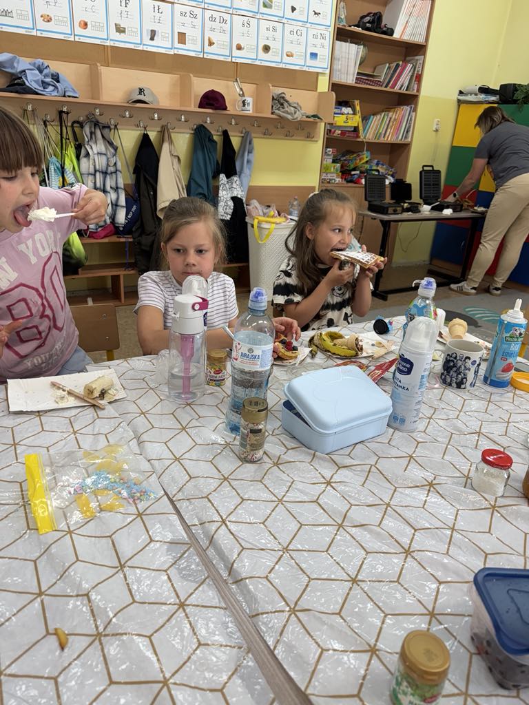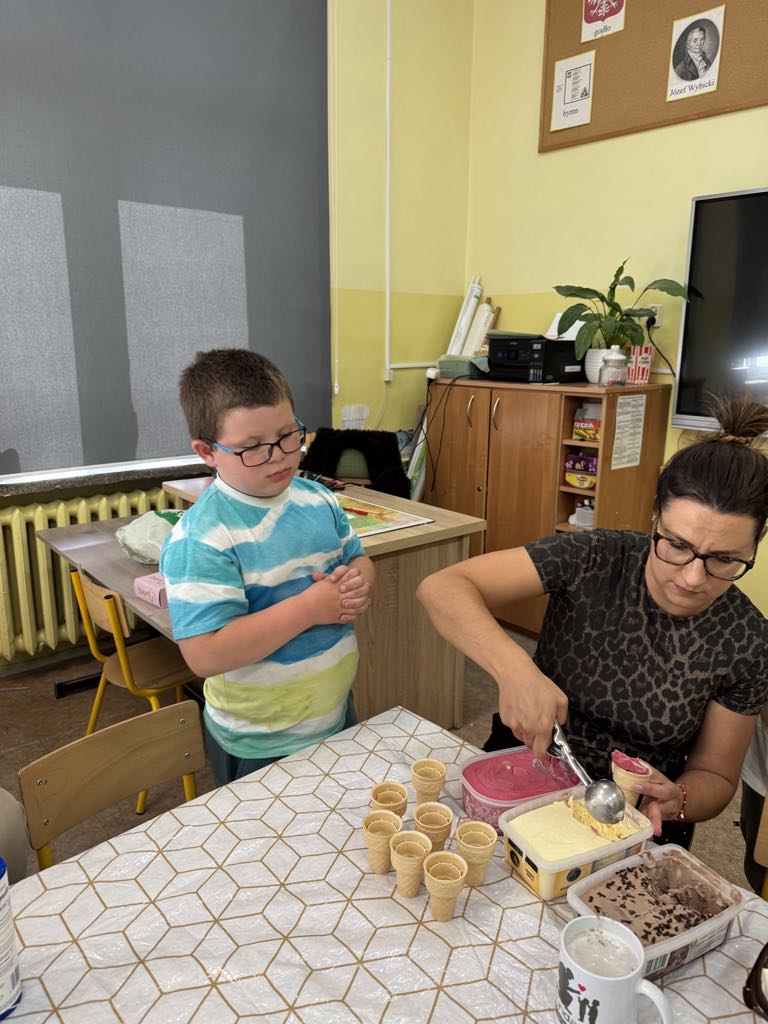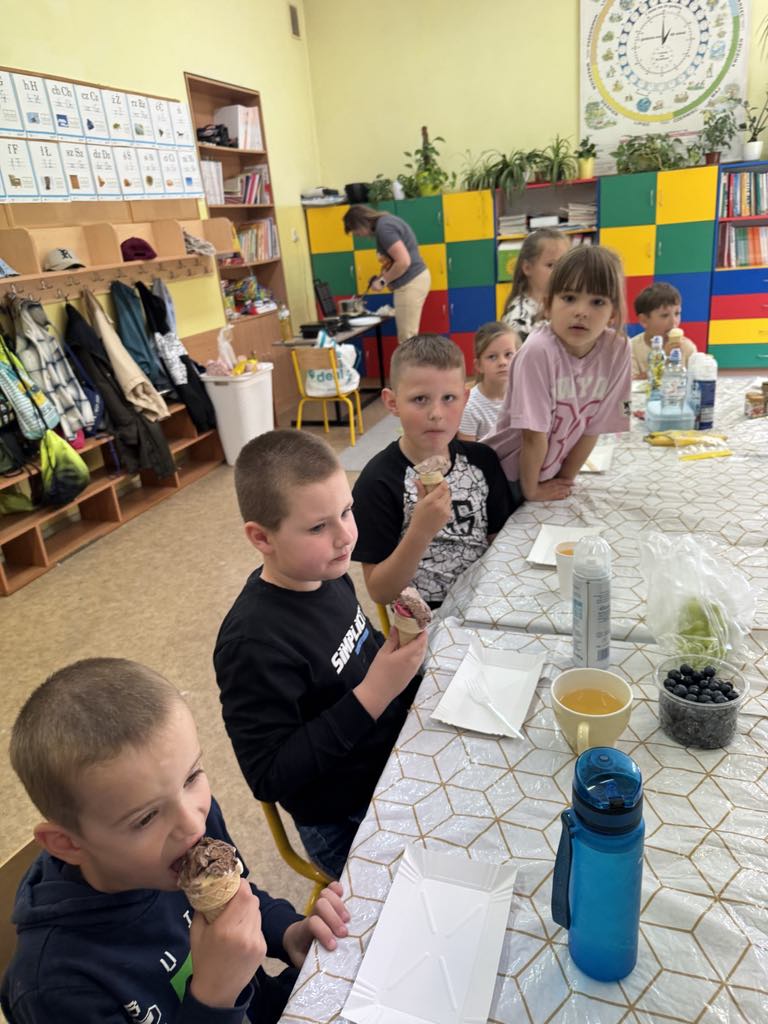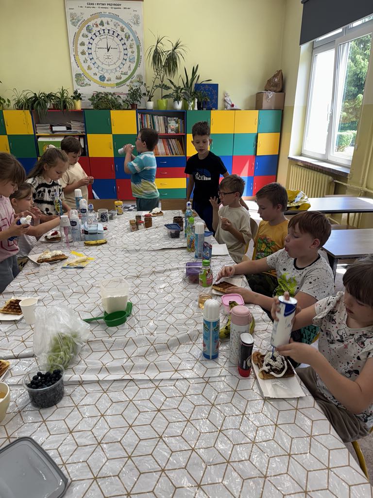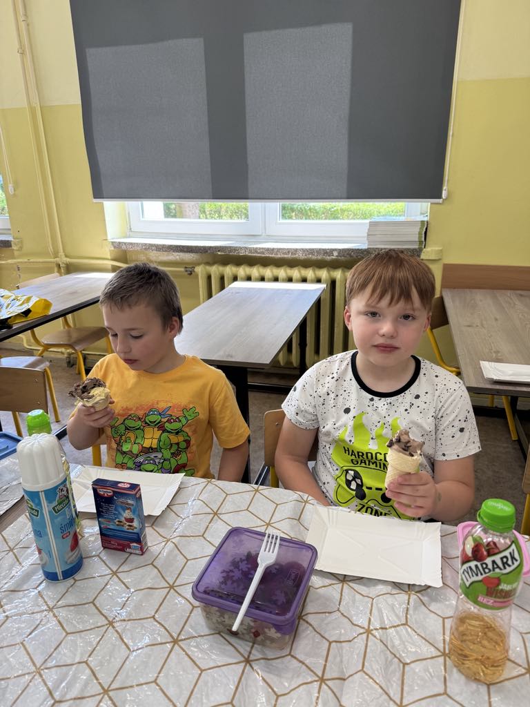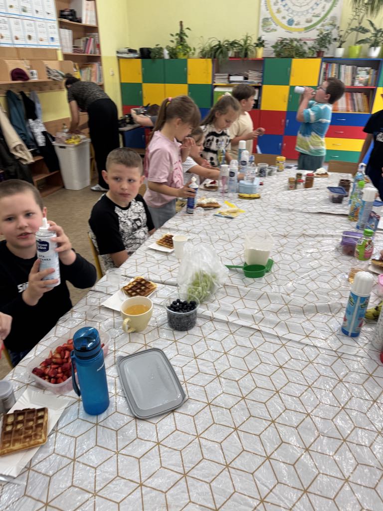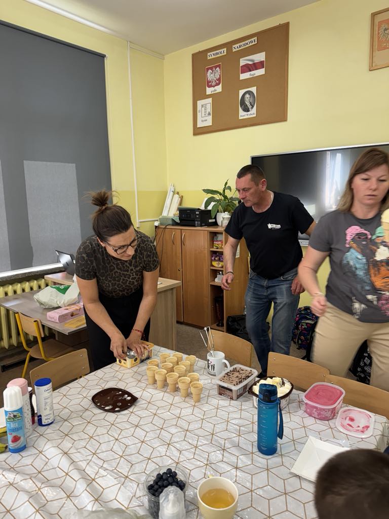 13 czerwca 2025 roku uczniów klasy IB odwiedzili rodzice. Najpierw obdarowali nas lodami a następnie zapoznali z pracą cukiernika i przygotowali przepyszne gofry. Każdy uczeń mógł zjeść gofra z tym, co lubi najbardziej i przyozdobić tak, jak tylko wymarzył. Było przepysznie, słodko i kolorowo 🧇🧇🧇
