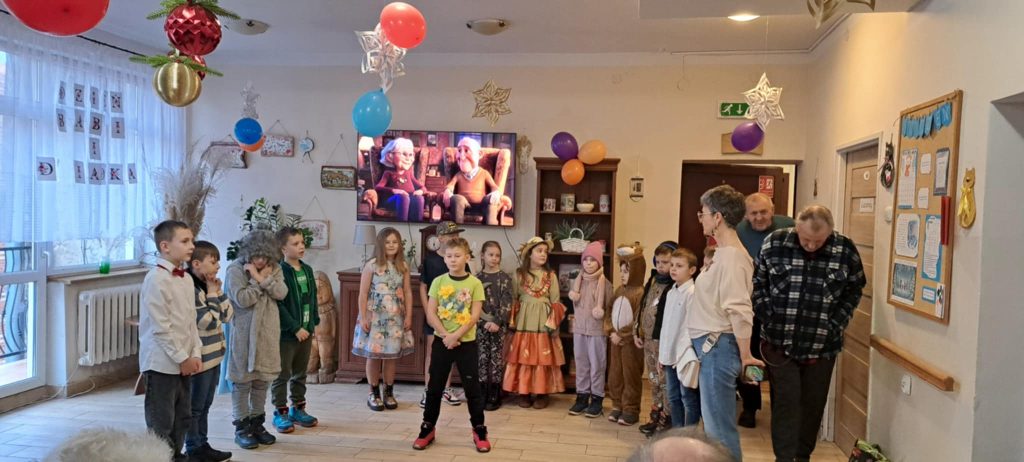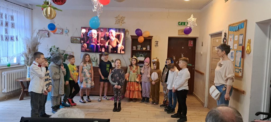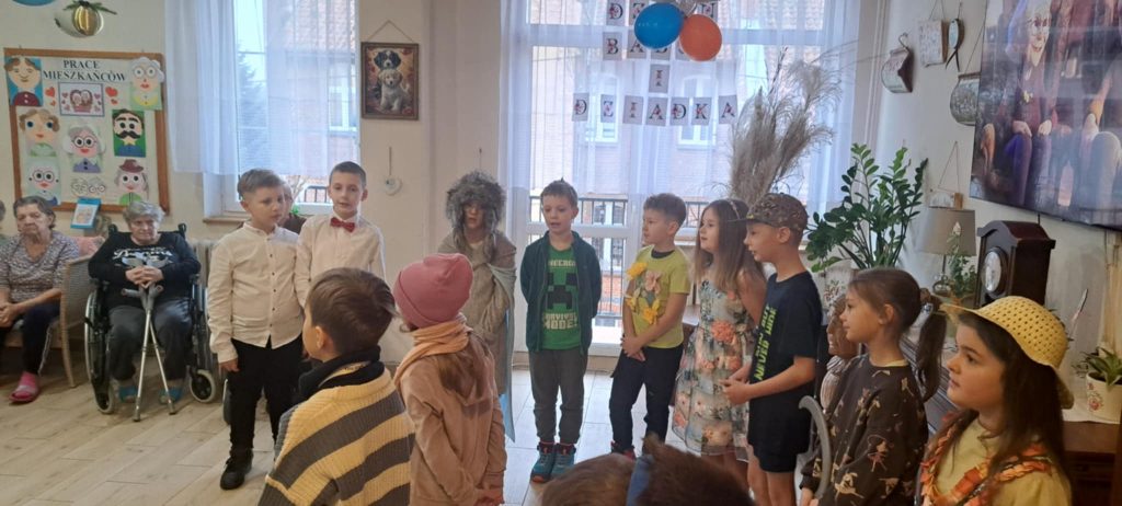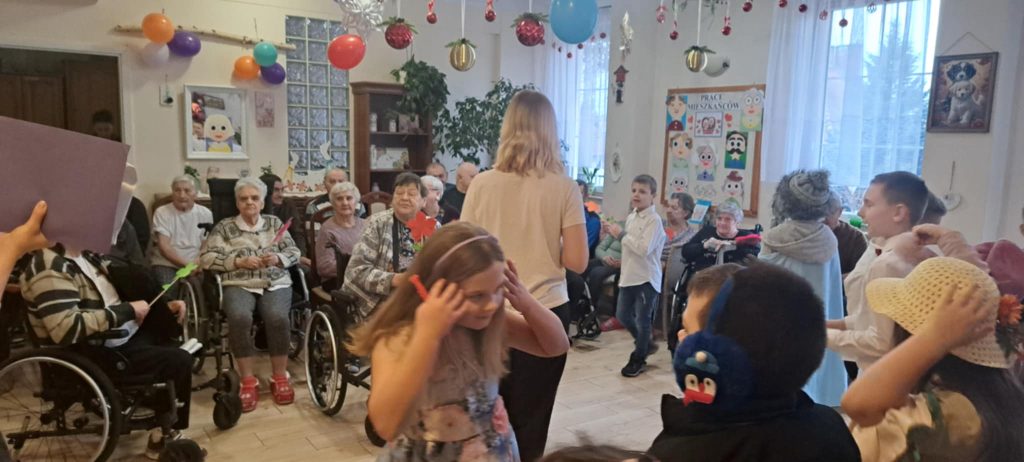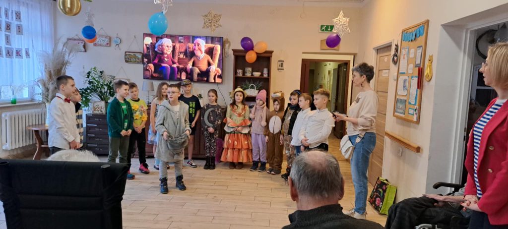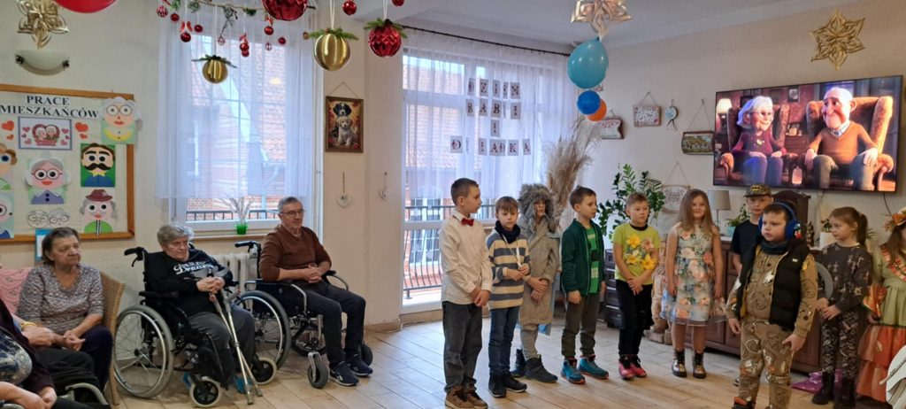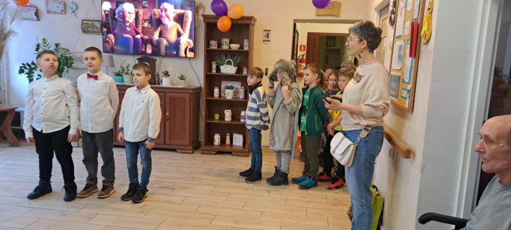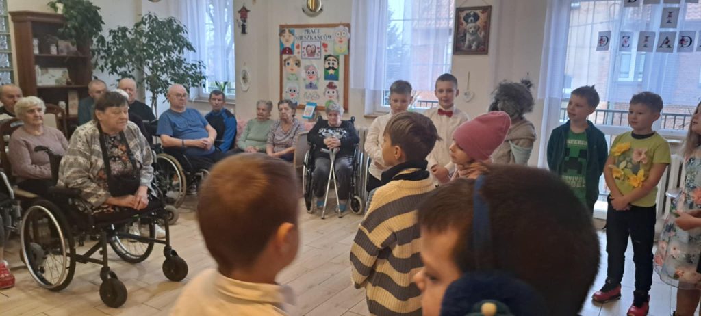 Dnia 24 stycznia uczniowie klasy IIb odwiedzili Dom Pomocy Społecznej, gdzie mieli okazję złożyć życzenia z okazji Dnia Babci i Dziadka. Po przybyciu na miejsce dzieci zostały serdecznie powitane przez panią dyrektor DPS-u. Następnie uczniowie zaprezentowali występ, śpiewając radosne piosenki, które wprowadziły wiele ciepła i uśmiechu w serca seniorów zgromadzonych na sali.