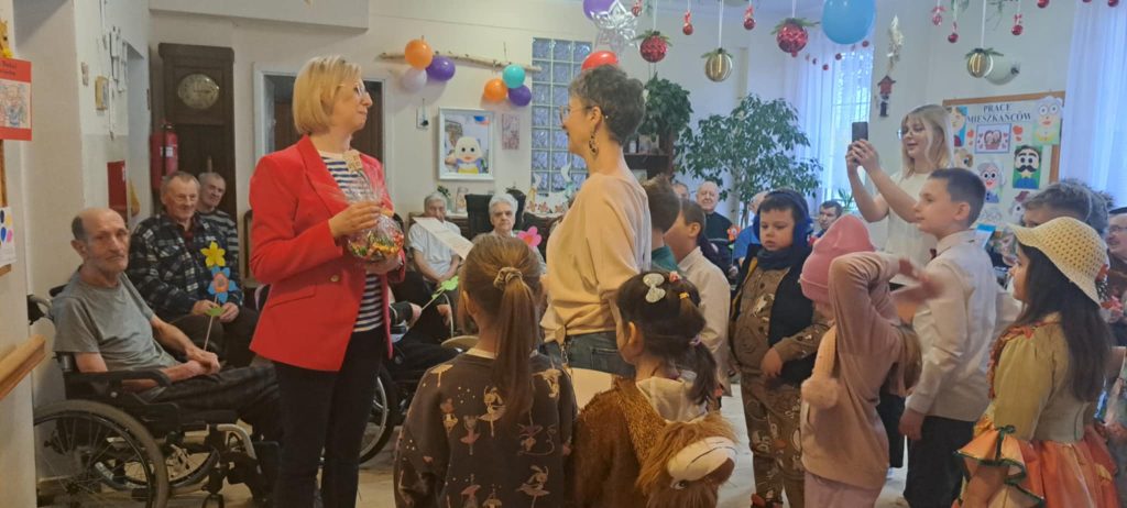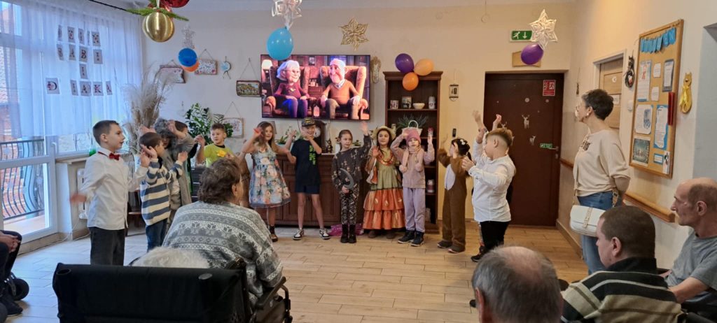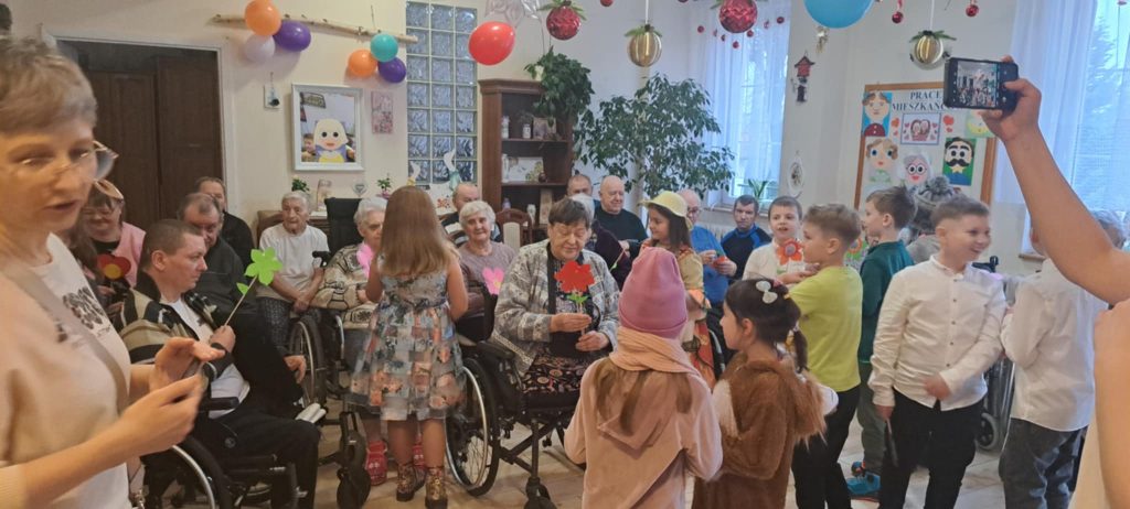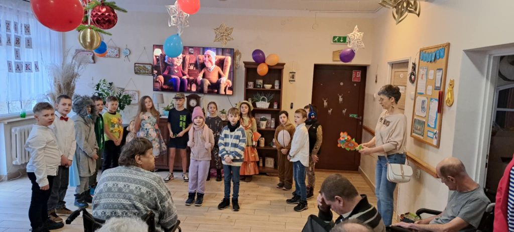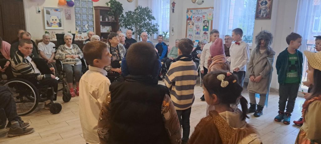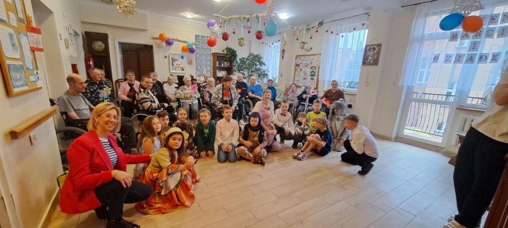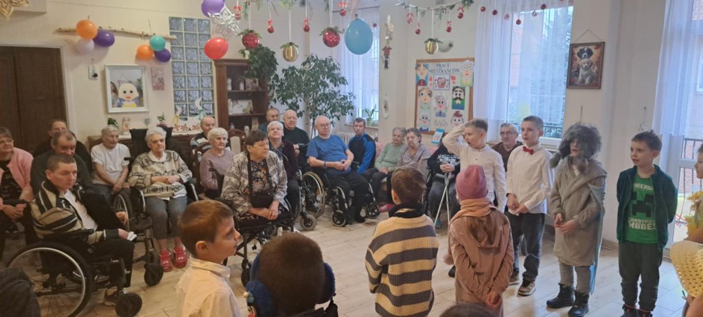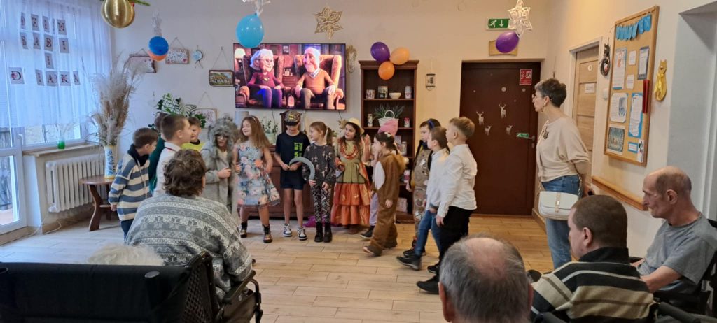 Dnia 24 stycznia uczniowie klasy IIb odwiedzili Dom Pomocy Społecznej, gdzie mieli okazję złożyć życzenia z okazji Dnia Babci i Dziadka. Po przybyciu na miejsce dzieci zostały serdecznie powitane przez panią dyrektor DPS-u. Następnie uczniowie zaprezentowali występ, śpiewając radosne piosenki, które wprowadziły wiele ciepła i uśmiechu w serca seniorów zgromadzonych na sali.