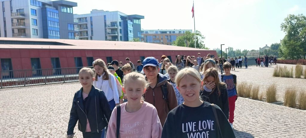 Uczniowie klas 4, 5a i 5b byli 16.06.23r. na wycieczce w Gdańsku. Zwiedzili Muzeum II Wojny Światowej, gdzie przybliżyli sobie okoliczności wybuchu wojny i jej przebieg. Obejrzeli wiele eksponatów i historycznych zdjęć. Następnie zwiedzili gdańską starówkę, chłodząc się zimnymi napojami i lodami. Potem autokarami pojechali na Westerplatte, gdzie zobaczyli miejsce, w którym nastąpił atak faszystowskich Niemiec na Polskę. Wycieczka zakończyła się spożyciem obiadu w Mac Donaldzie. Dzieci zmęczone, ale szczęśliwe wróciły do domu.