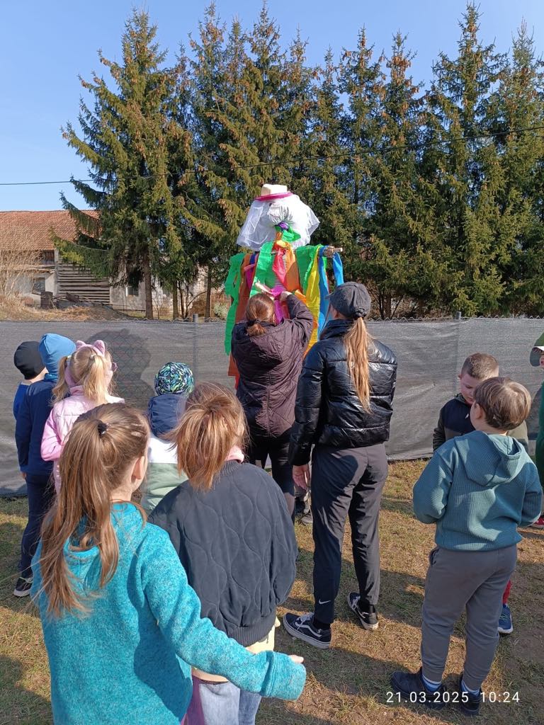 W piątek 21 marca 2025 roku uczniowie klasy IB aby powitać wiosnę udali się na wycieczkę do Skitna. Najpierw uczniowie wykonali Marzannę, później wzięli udział w warsztatach robienia zająców wielkanocnych oraz ozdób na drzewko wielkanocne. Po spacerze i poszukiwaniu oznak wiosny wszyscy zjedli pyszne kiełbaski a na koniec została spalona Marzanna, aby wiosna już na dobre się zadomowiła.