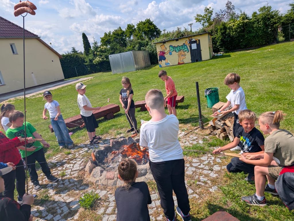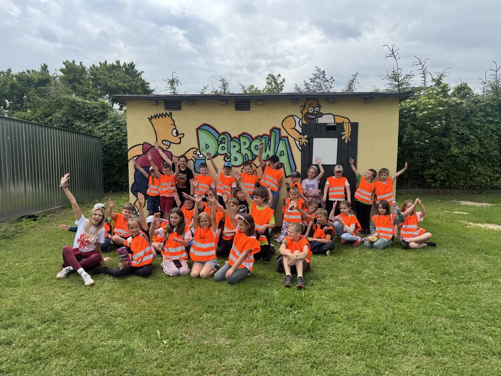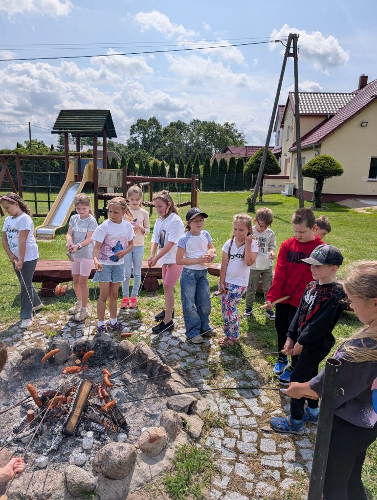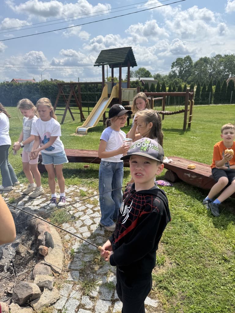 Dnia 18 czerwca 2025 uczniowie klasy Ib i IIa udali się do Dąbrowy na ognisko z okazji zbliżającego się końca roku szkolnego. Oprócz pieczenia kiełbasek i pianek dzieci mogły skorzystać z placu zabaw oraz wziąć udział w różnych zabawach sportowych. Wycieczka była bardzo udana a dzieci zadowolone z pokonania drogi na piechotę 🙂