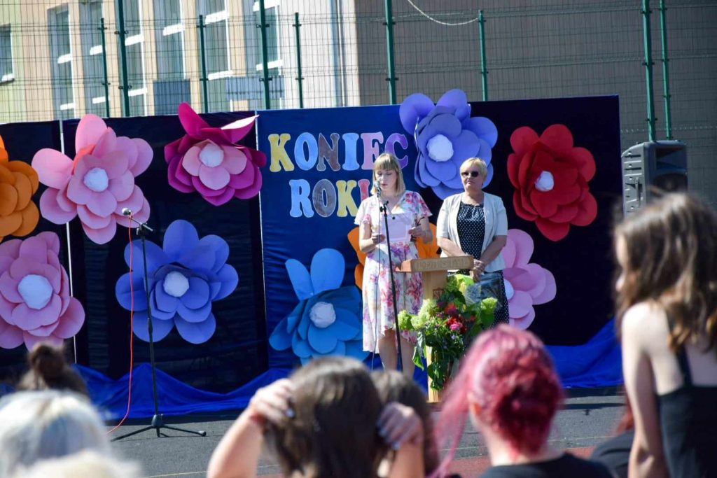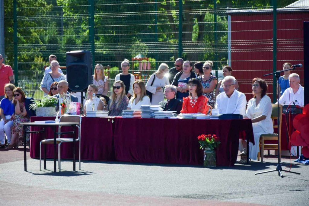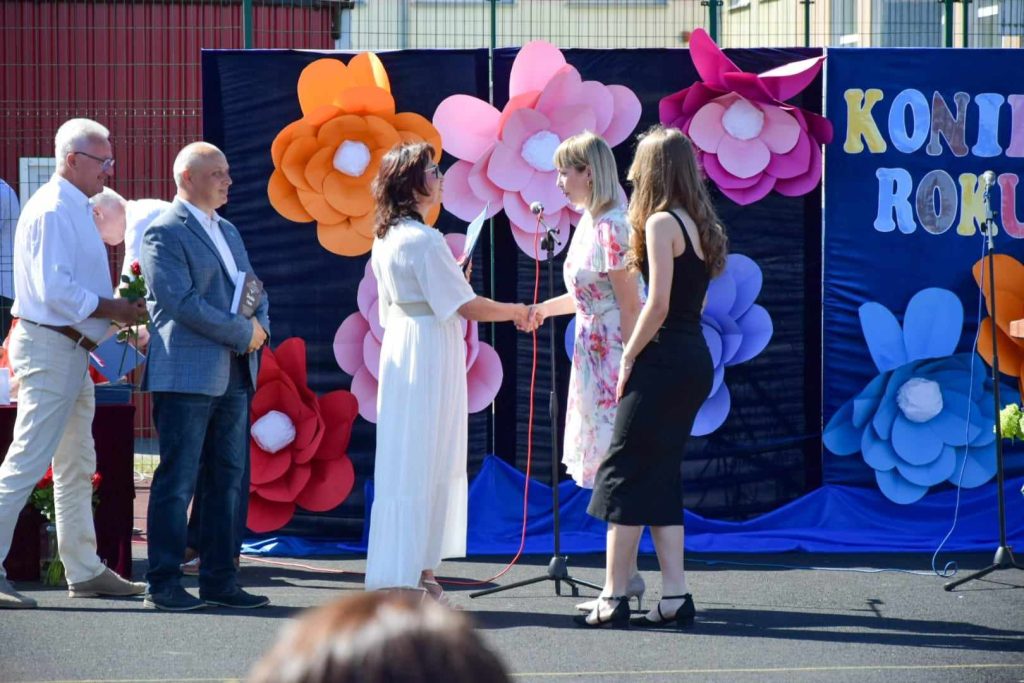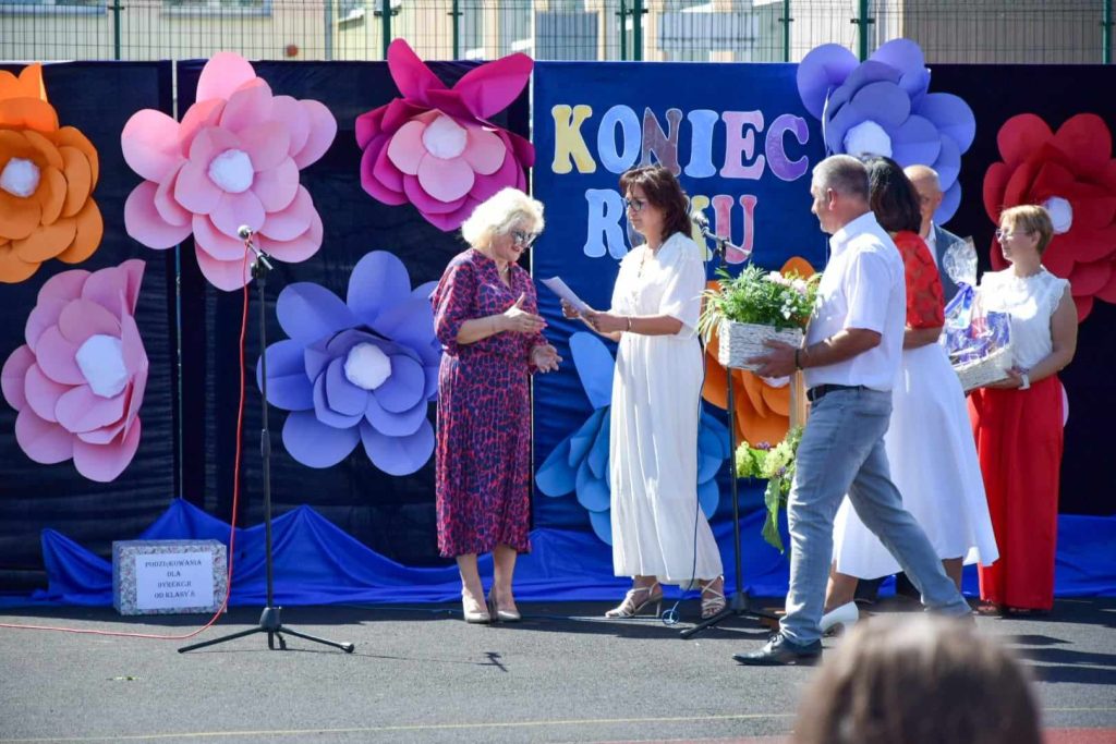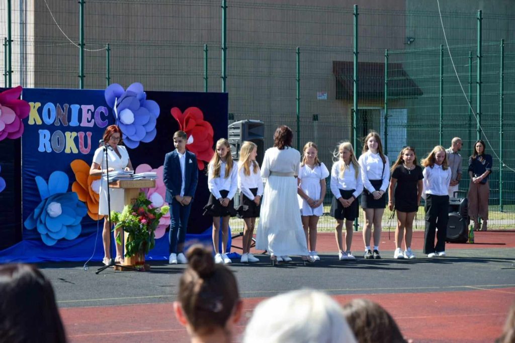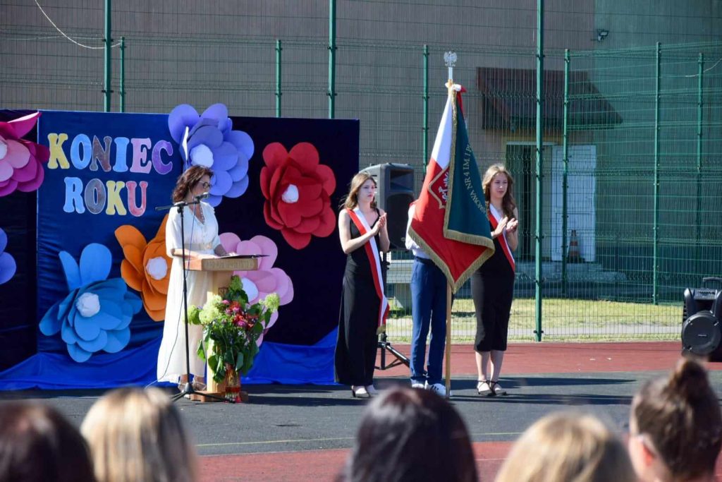 21 czerwca 2024 roku odbyło się uroczyste zakończenie kolejnego roku szkolnego w Szkole Podstawowej nr 4 w Bartoszycach. Akademię rozpoczął taniec polonez wykonany przez uczniów klas ósmych. Następnie pani dyrektor Urszula Krajewska podziękowała całej społeczności szkolnej za włożony wysiłek, współpracę i aktywność. Życzyła wszystkim udanych wakacji. Słonecznych i beztroskich wakacji życzyli również zaproszeni goście: dyrektor ZAO p. Zdzisław Żytko, ks. proboszcz Leszek Dereń oraz przedstawiciel Rady Rodziców p. Mariusz Czajkowski. Goście obejrzeli uroczyste przekazanie sztandaru szkoły oraz ślubowanie uczniów klas ósmych. Najlepszym uczniom wręczono świadectwa z czerwonym paskiem oraz nagrody książkowe. Nagrody otrzymali także najlepszy uczeń i najlepszy sportowiec szkoły. Na zakończenie uczniowie klasy siódmej pożegnali uczniów klasy ósmej, wręczając im skromne upominki.
